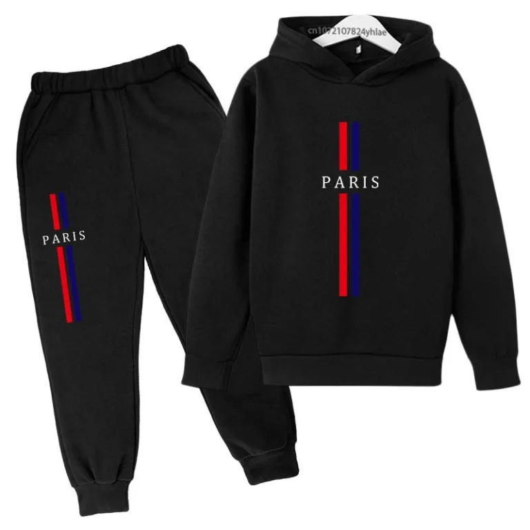 Kids Autumn Spring Casual Paris Print 2pcs Hoodie+Pants Tracksuits 2-13Years Boys Girls Fashion Streetwear Children Clothes Sets