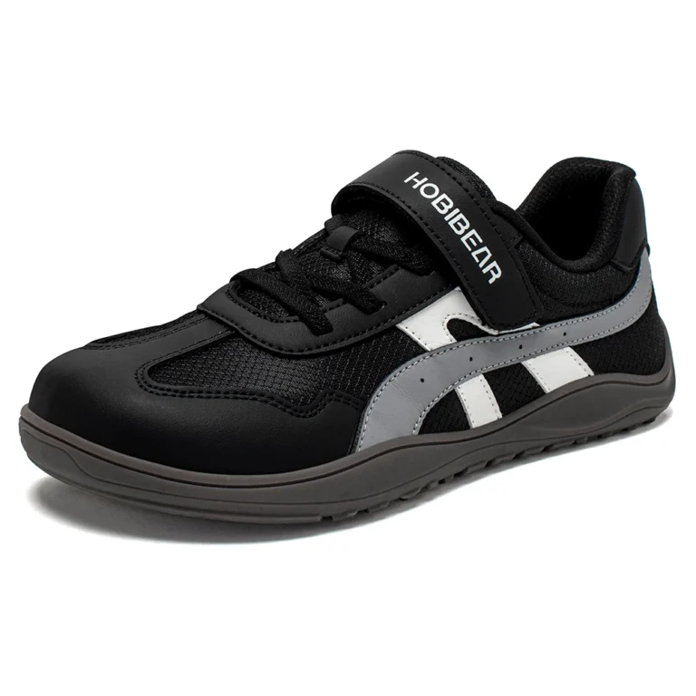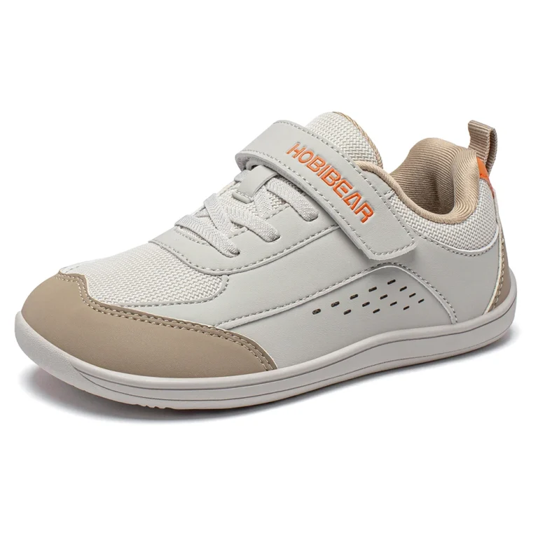 HOBIBEAR Kids Wide Toe Shoes Big Kid Barefoot Hook Loop Minimalist Sneakers Artificial Leather Mesh Shoes