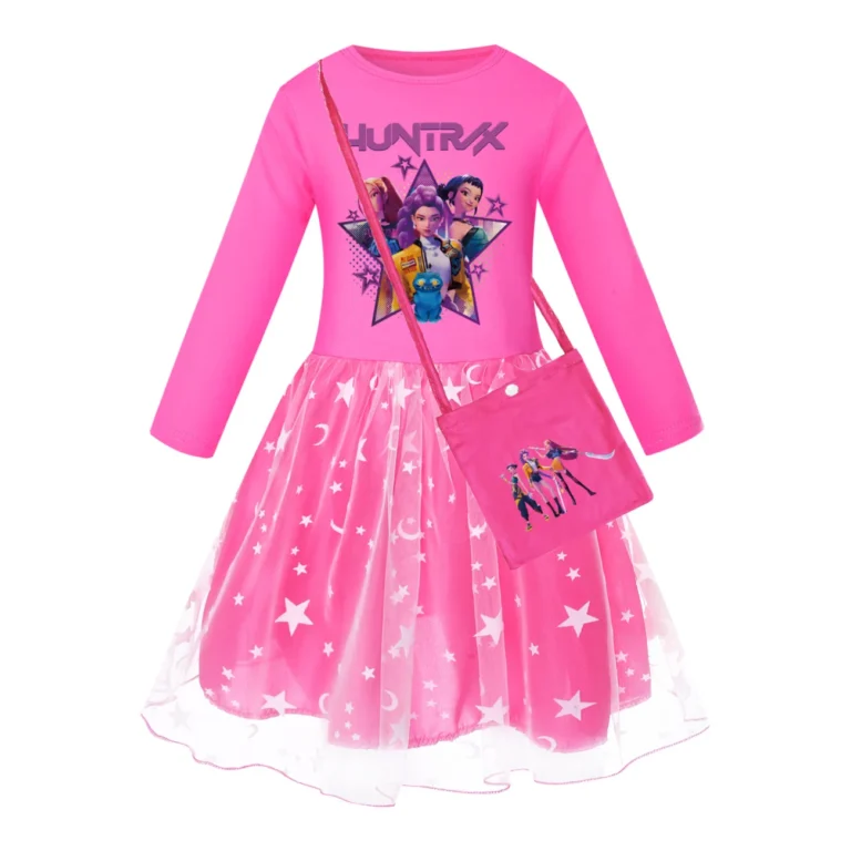 KPop Demon Hunters Kids Clothes Long Slevess Dresses Cotton Rainbow Full Dress Teen Fashion Girl’s Clothing Party Clothes 3-12Y