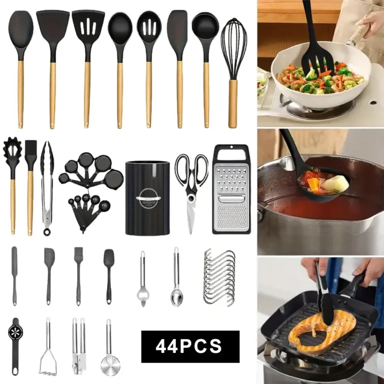 Household Multifunctional Silicone Kitchenware Non-Stick Cookware Kitchen Utensils Set With Wooden Handle Cooking Spoon Tools
