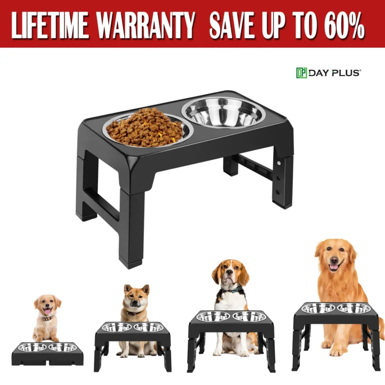 Dayplus Raised Dog Bowl Height-Adjustable, Elevated Dog bowls with 2x 1200ml Stainless Steel Bowls, for Small Medium & Large Dog