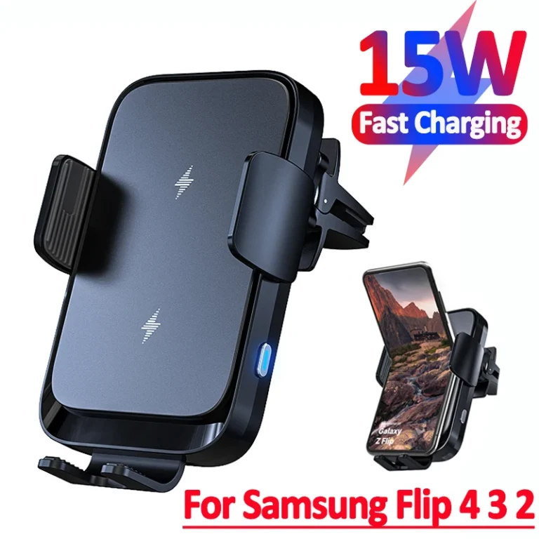 Wireless Car Charger Dual Coil Car Phone Holder Stand for Samsung Galaxy Z Flip 5 4 3 S22 S21 iPhone 14 13 Fast Charging Station