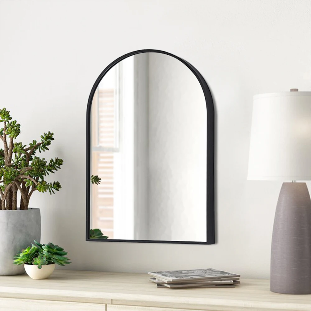 Upgrade your home decor with our Breeins stunning arch wall mirror. Featuring a sleek black aluminum alloy frame and a unique arched design, this mirror adds a touch of sophistication to any room and complements a wide range of color palettes and decor styles. The mirror can be easily installed by mounting it on the wall or leaning it against the wall for a more casual look. Whether you need to check your outfit before heading out or simply want to brighten up a room, this mirror is an excellent choice.