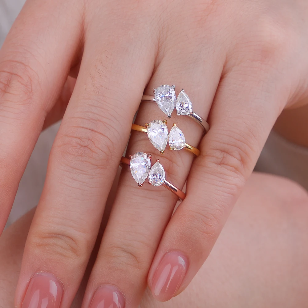 1.5cttw Double Pear Cut Moissanite Diamond Ring for Women Two Stone Toi Et Moi Wedding Bands 925 Silver 18k Gold Plated Jewelry