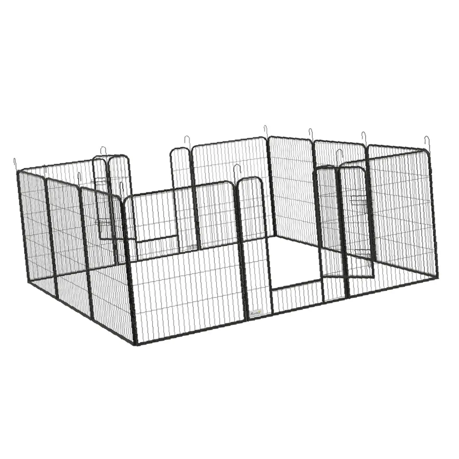 Steel frame: A robust pet pen, great for indoor and outdoor use. Includes step-through doors for easy access. The locks keep pets securely inside when needed.