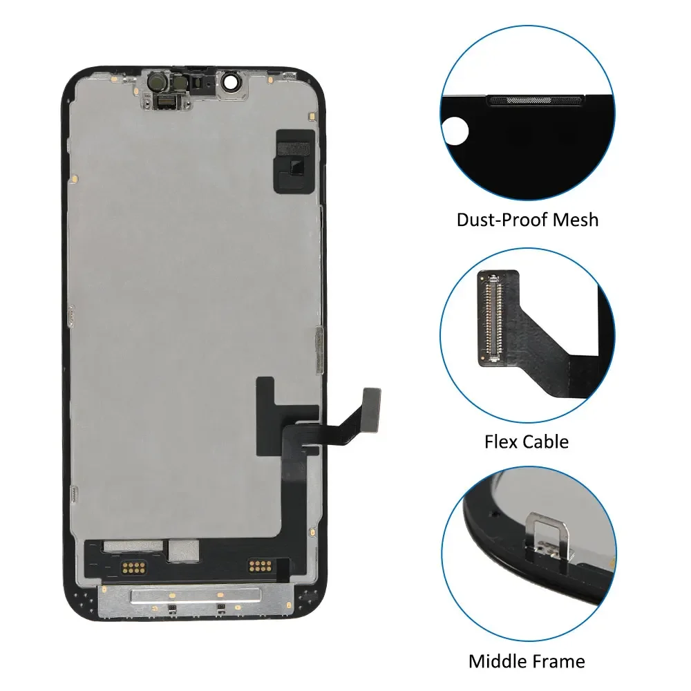 1. Parts:Outer Glass + LCD Screen + Touch Digitizer Panel + Front Camera ring +Light Sensor ring+Dust-proof Earspesker mesh, Pre-assembled.(XR/11 With Back Plate)