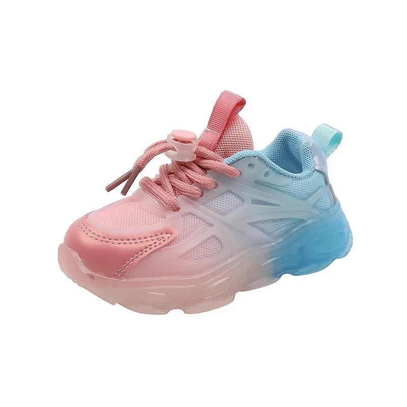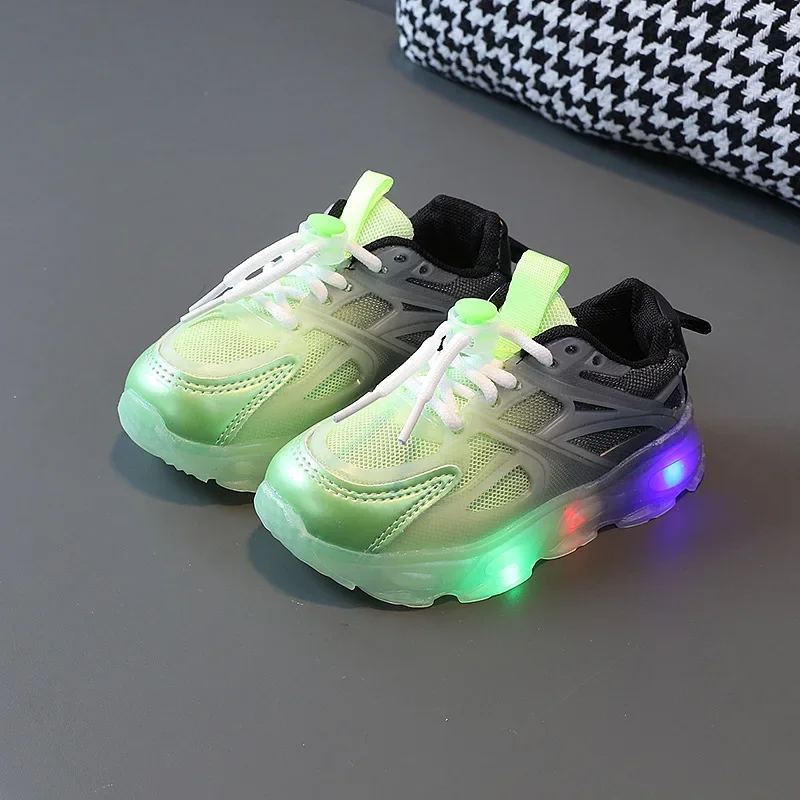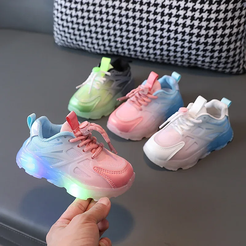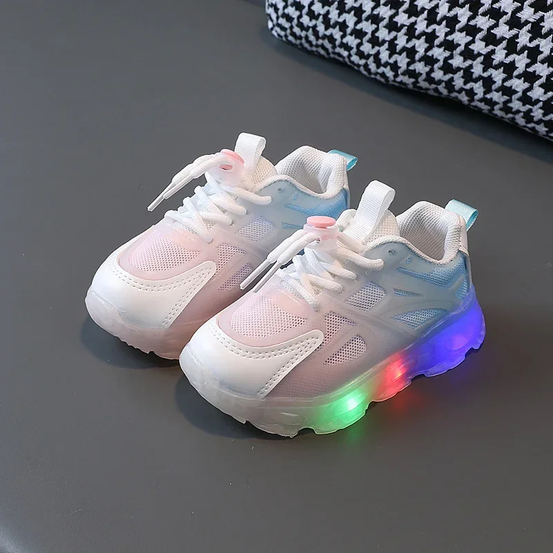 2025 Child Sport Shoes Spring Luminous Fashion Breathable Kids Boys Net Shoes Girls LED Sneakers with Light Running Shoes