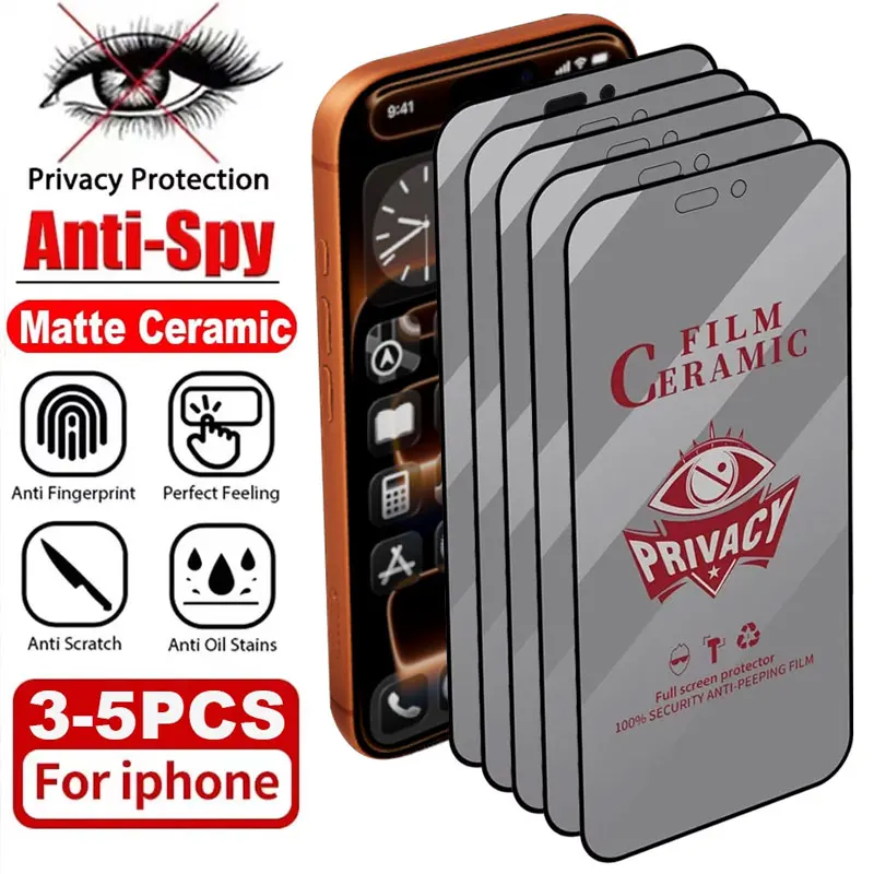 3-5PCS Privacy Ceramic Film For iPhone 17 Pro Max Air 11 12 13 14 15 16 Pro Max Plus XS XR Anti Spy Screen Protectors Matte Film