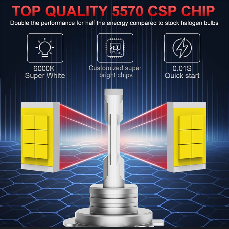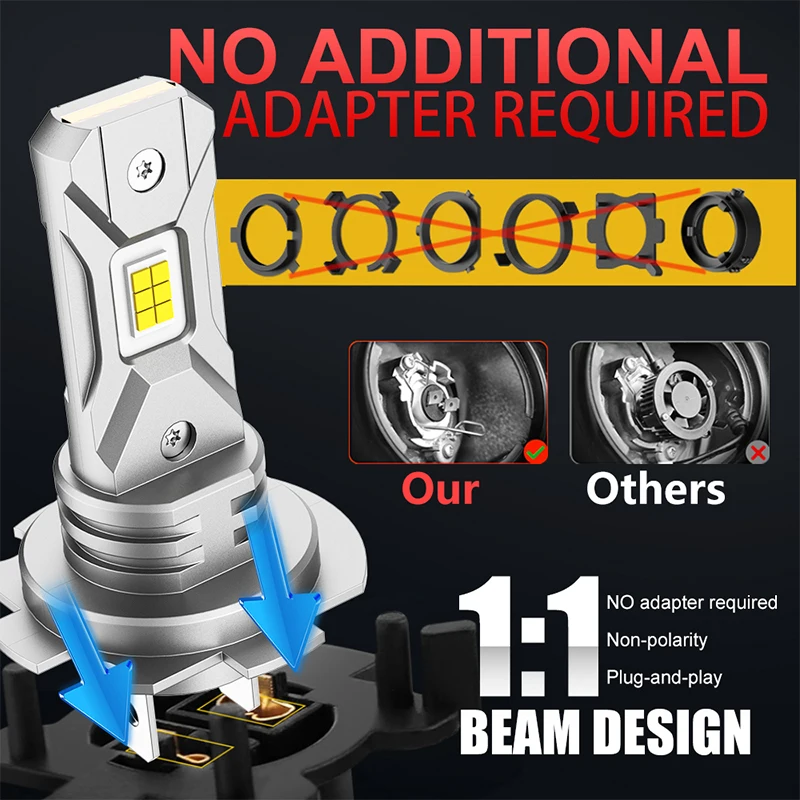 300W Turbo H7 LED Bulb 1:1 Mini Size Head Lamp Wireless 30000LM CSP LED Chips H7 Car LED Headlight Bulb 6000K White 12V 2Pcs