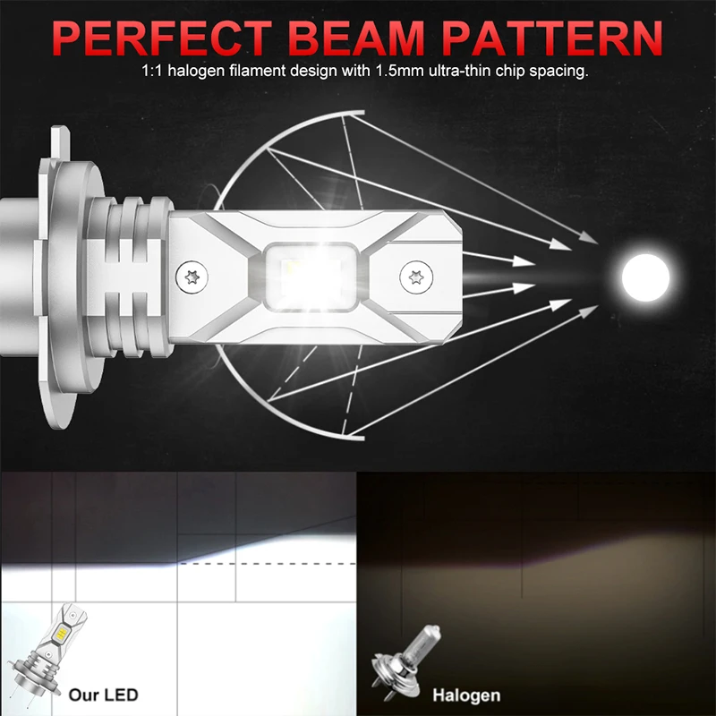 LM H7 LED bulb and halogen lamp luminous point, the focus point is exactly the same