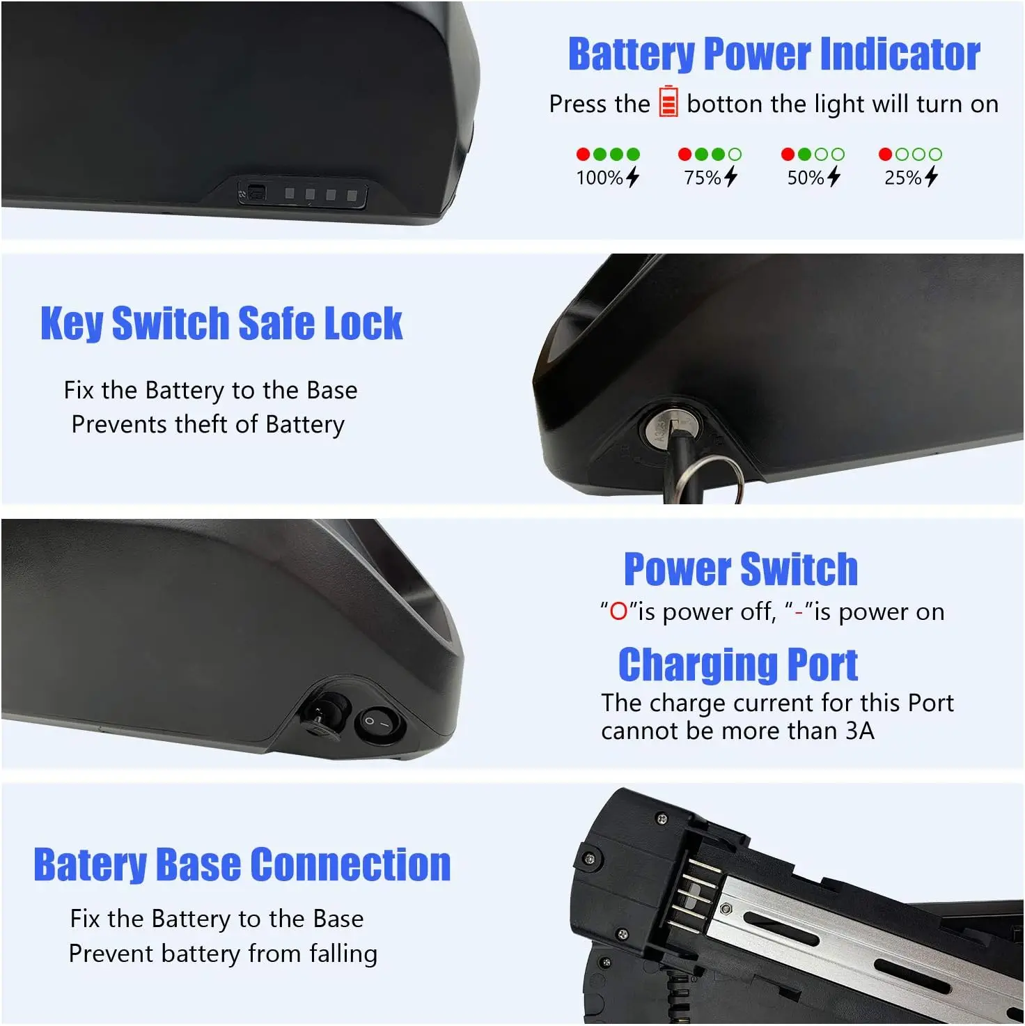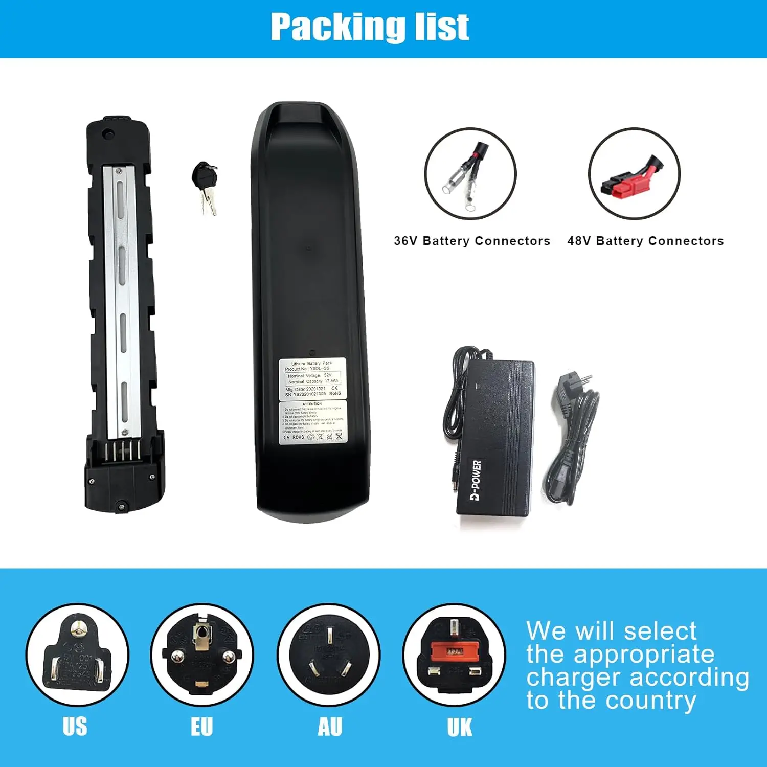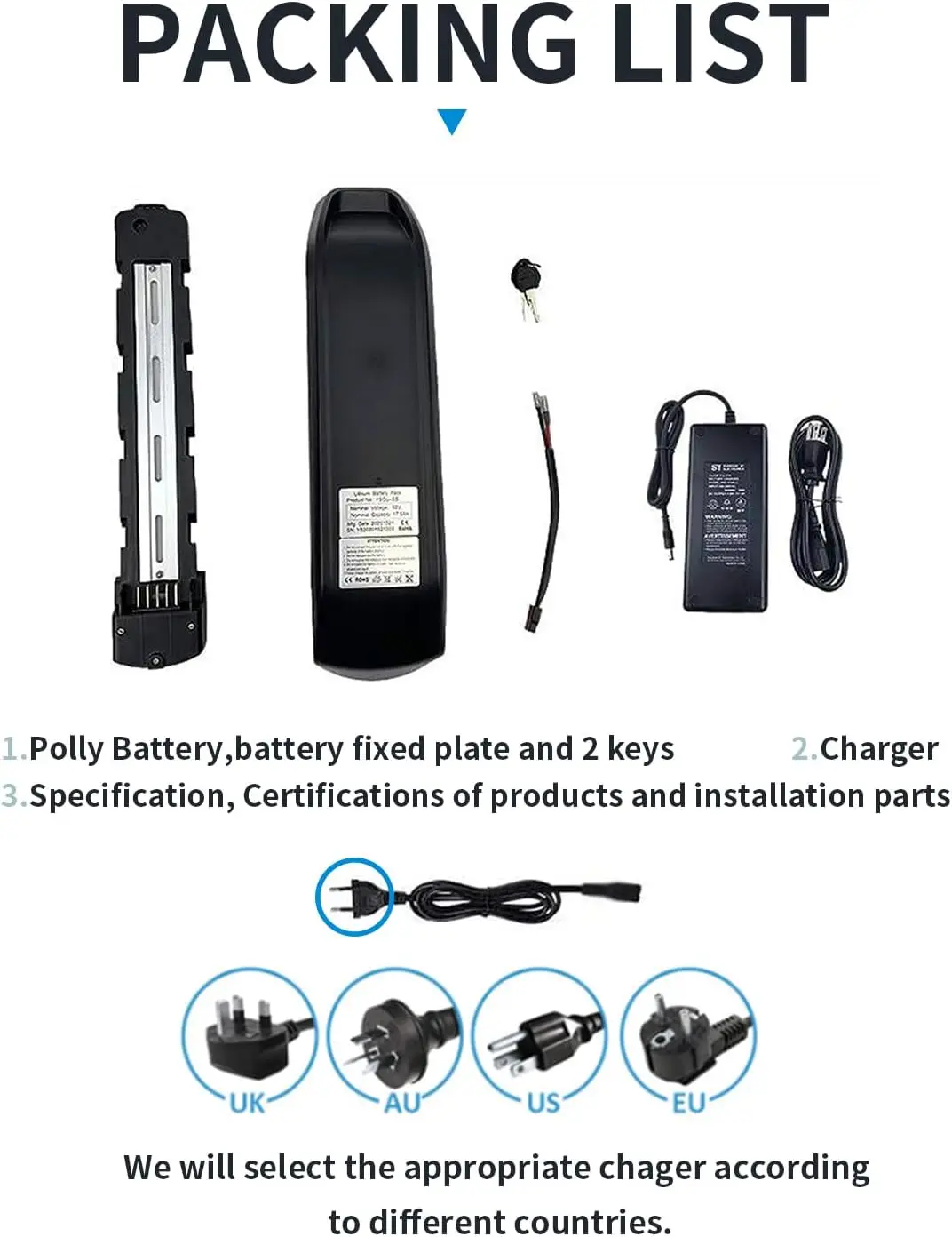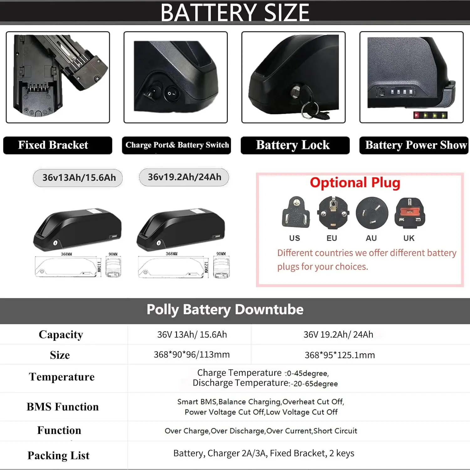 36V 24AH Polly Electric Bicycle Battery 30A BMS 350W 500W 750W 18650 Battery UK Charger 13Ah 15.6Ah 19.2Ah Ebike Li-ion Battery