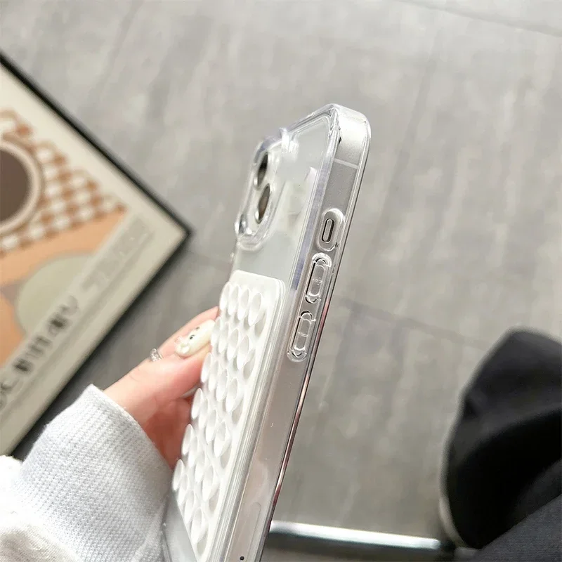 3D Suction Cup Airbag Phone Case For iPhone 17 16 15 14 13 12 11 Pro Max XR X XS 7 8 Plus SE Transparent Shockproof Bumper Cover