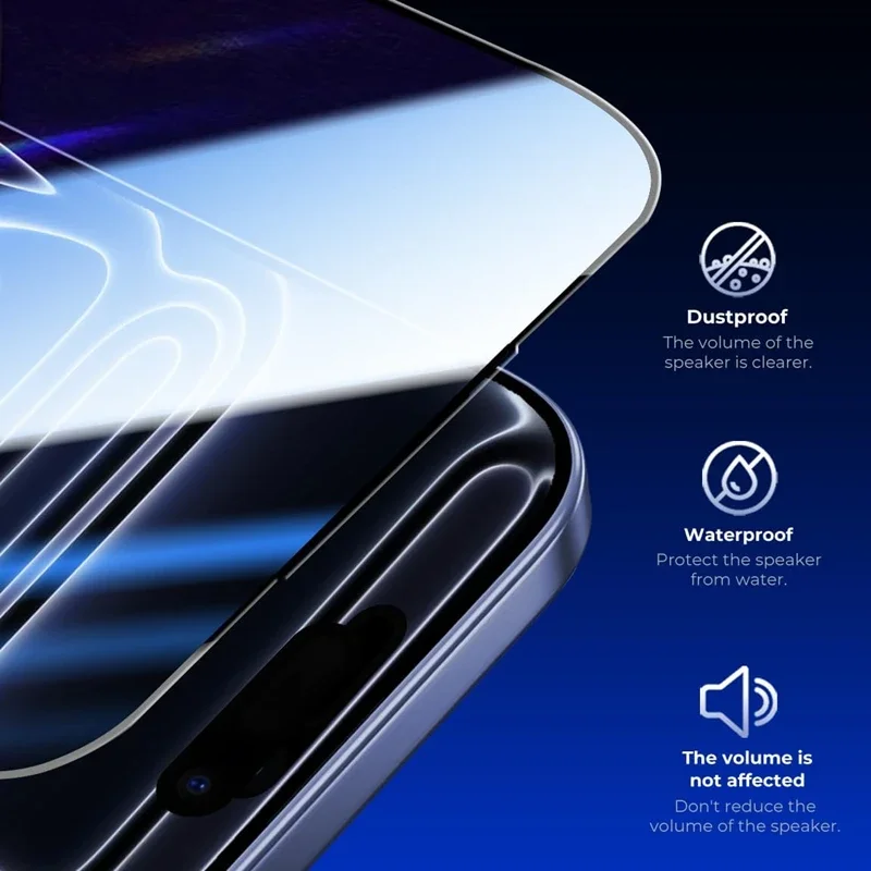 The screen protector film is designed to prevent dust during installation, ensuring a clean and clear screen.