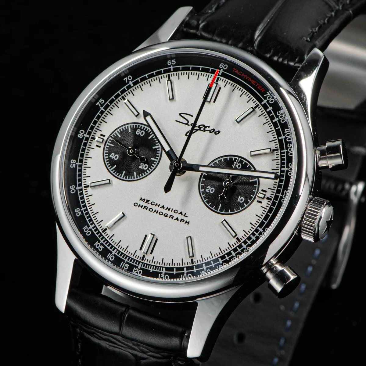 Sugess official brand Bracelet Chronograph panda dial