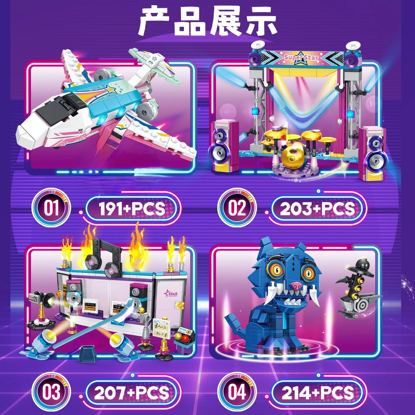 4in1 K-pop Demon Hunters Building Blocks Tiger Rumi Mira Zoey Action Figure Brick Collection Model with 3 Doll Toy For Kids Gift