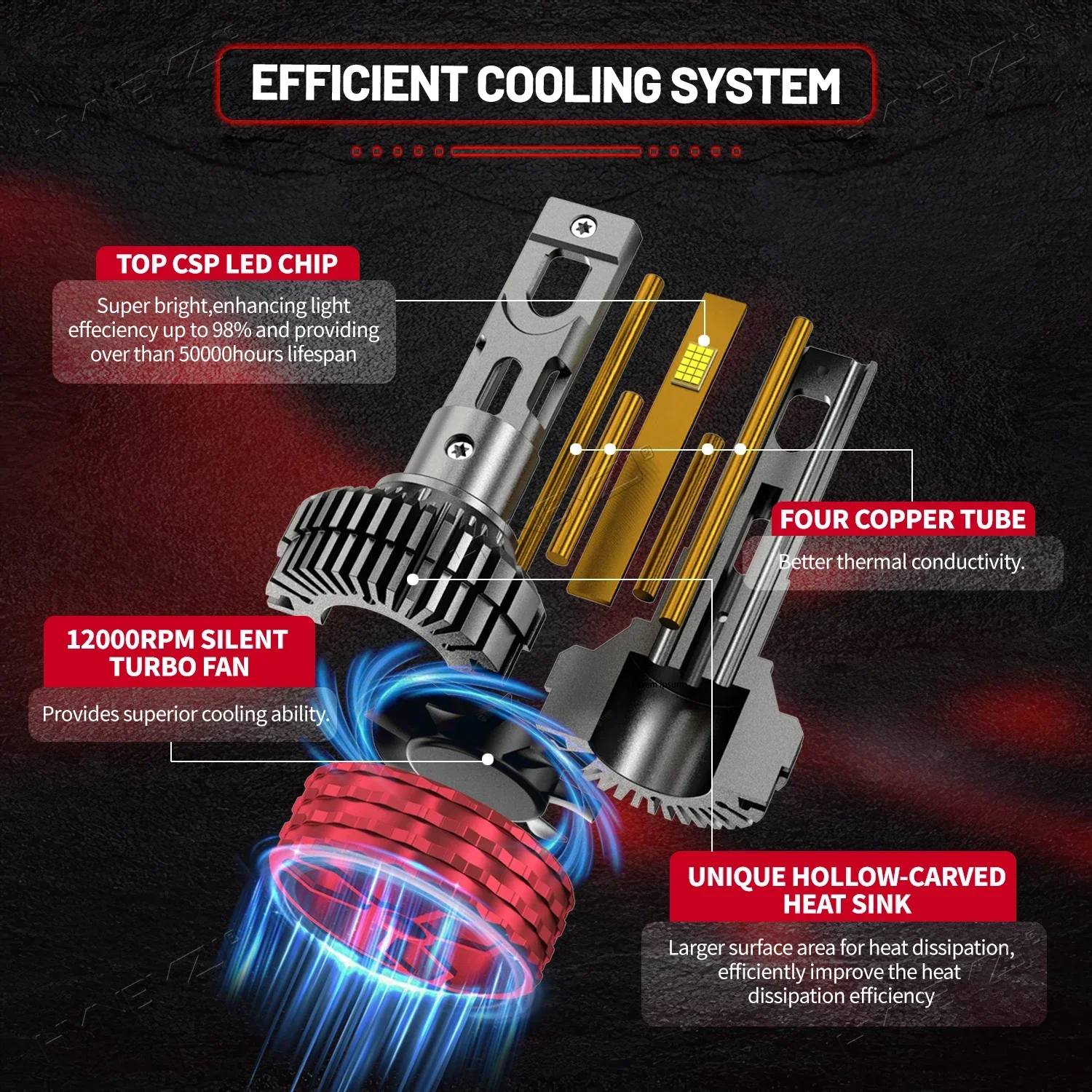 4. This product is not suitable for fog lights, deposits will reduce the life of the cooling system, if you need to use it in fog lights, please contact the staff, we will recommend a more suitable bulb for you.