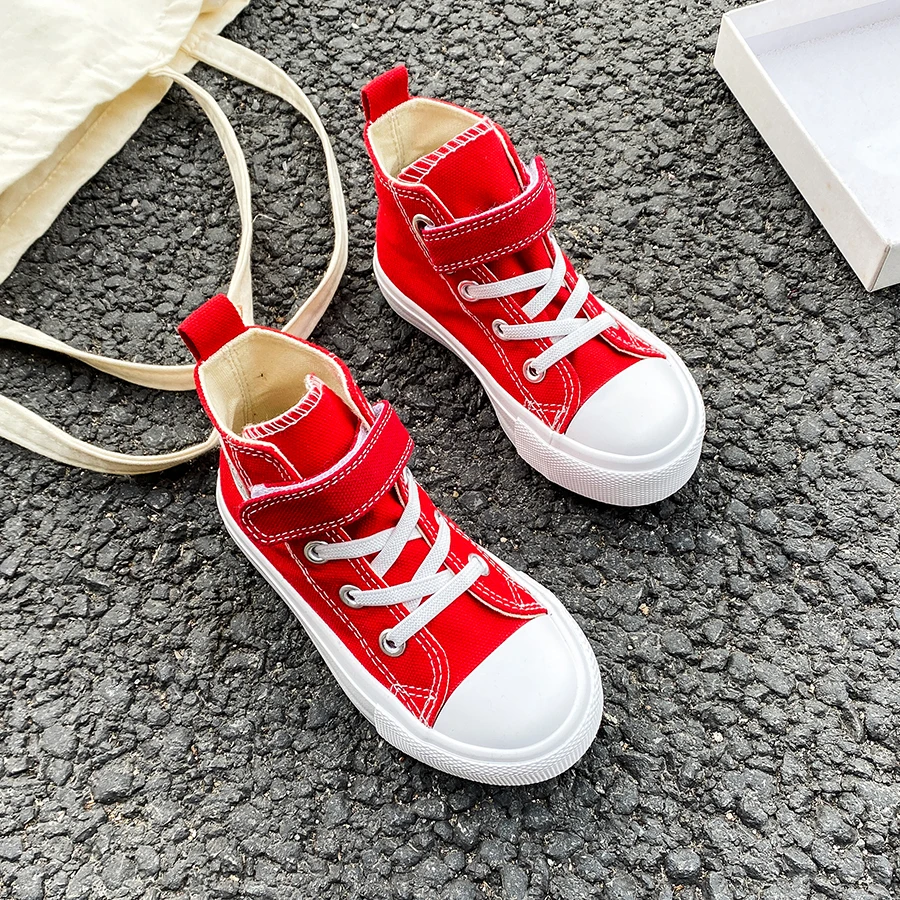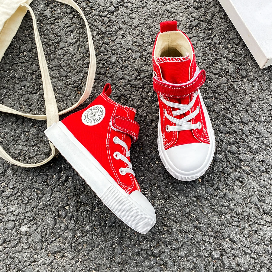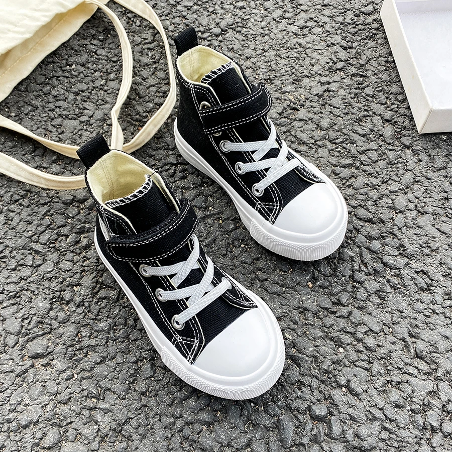 9022 High top solid color breathable children’s canvas shoes trendy boys and girls board shoes soft sole fashion cloth shoes