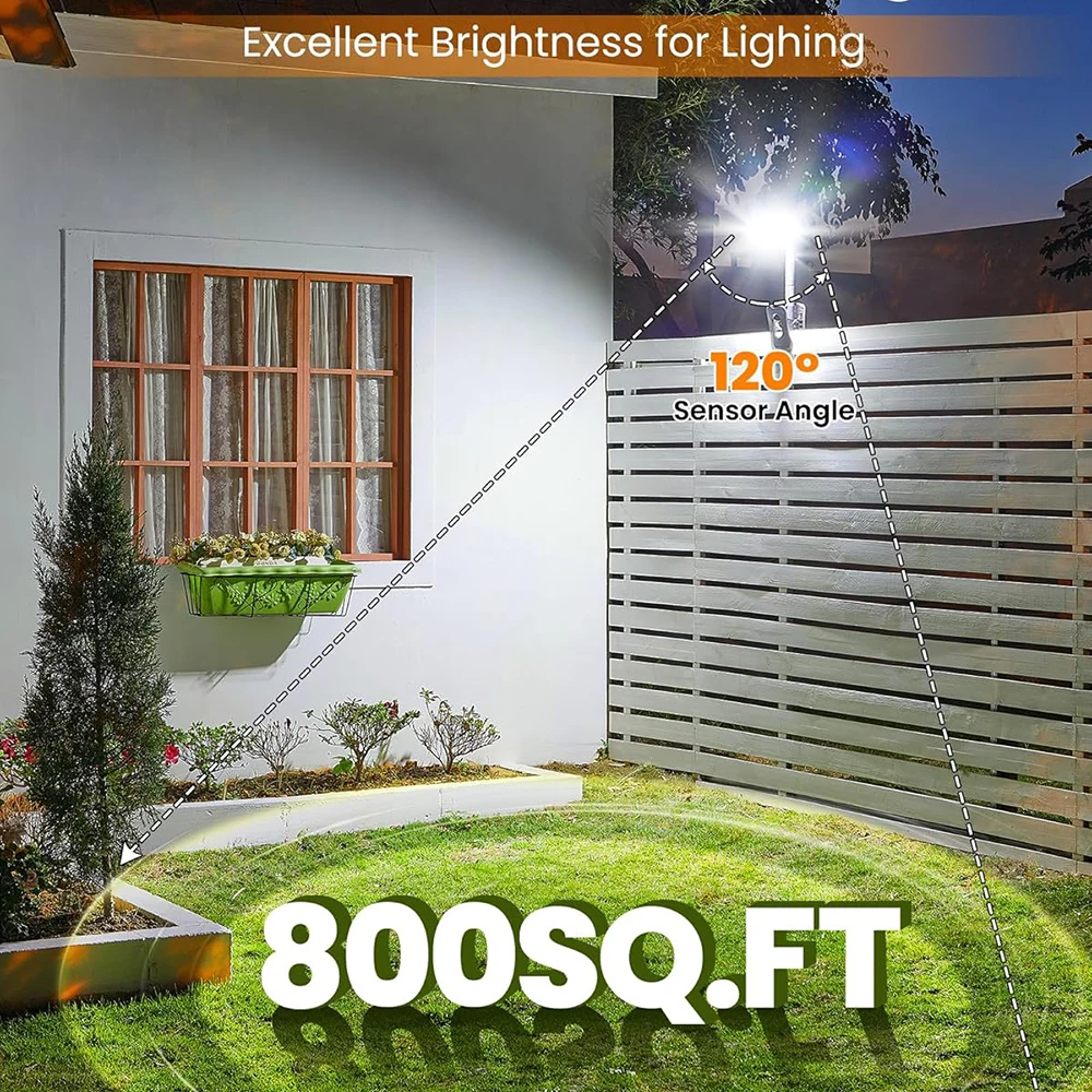 92 LEDs Solar Lights: This solar motion lights outdoor with 3 lighting modes (Constant/Detection/Off) cover 360° area, 50% brighter than standard motion sensor lights .120° PIR sensor activates 600LM bright light (7000K~7500K daylight) when detecting movement within 16ft range, perfect motion sensor outdoor lights.