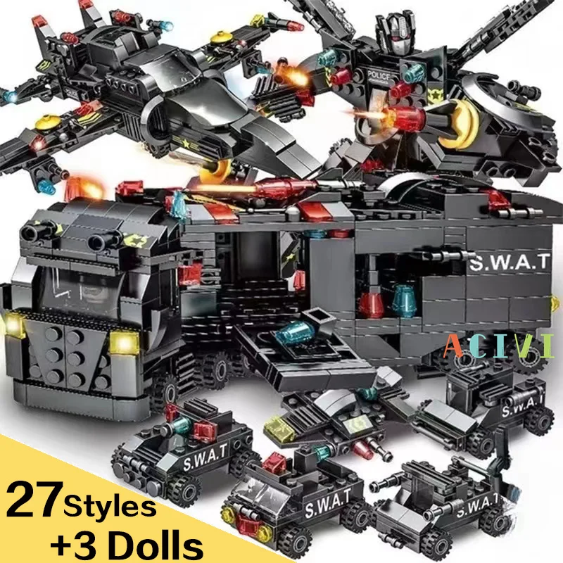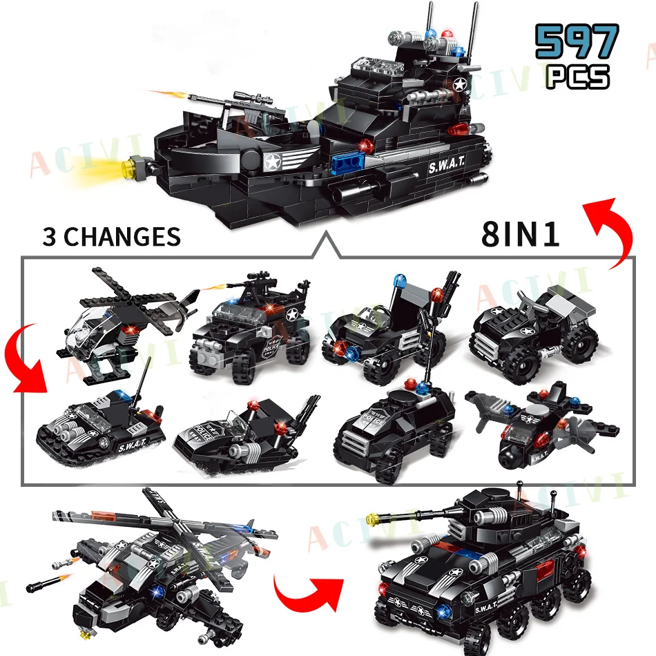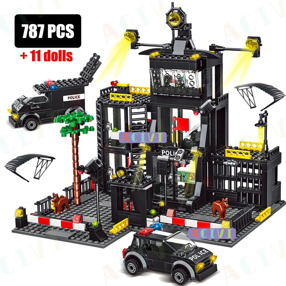 ACIVI SWAT Police Station Military City Model Set Prison Car Policeman Boat Figures Building Blocks DIY Toy for Kids Boys Gift