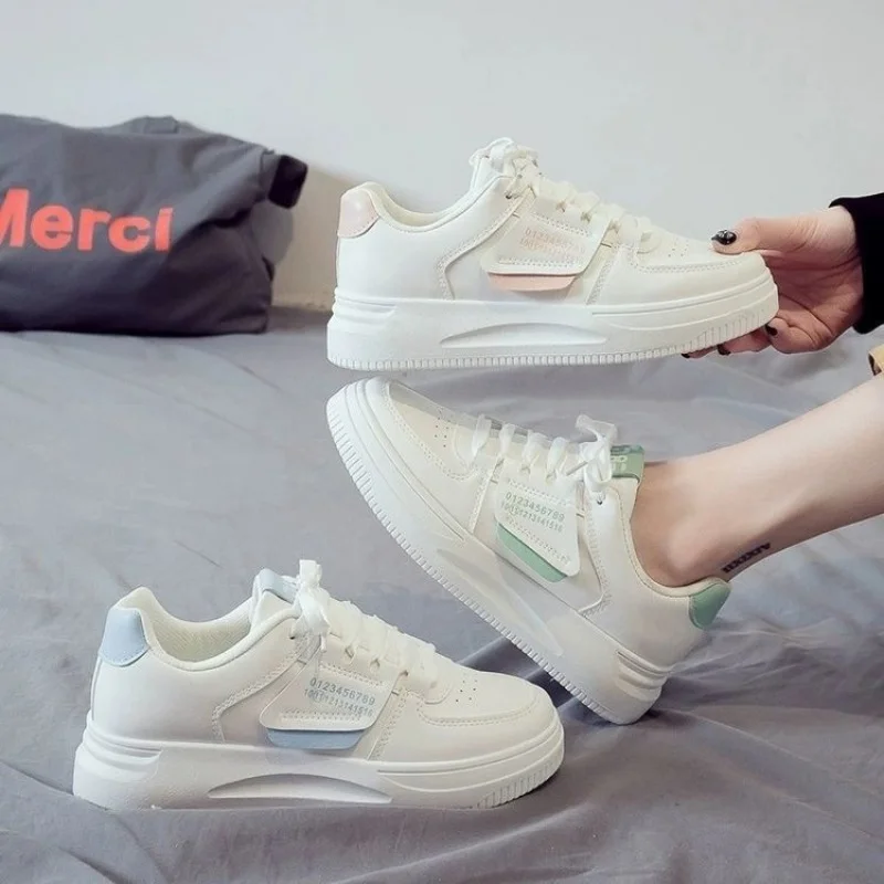 All-season New Korean White Sneakers for Women – Colorblock Platform Sports Board Shoes, Fashion Design Casual Shoes