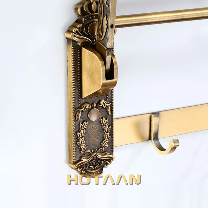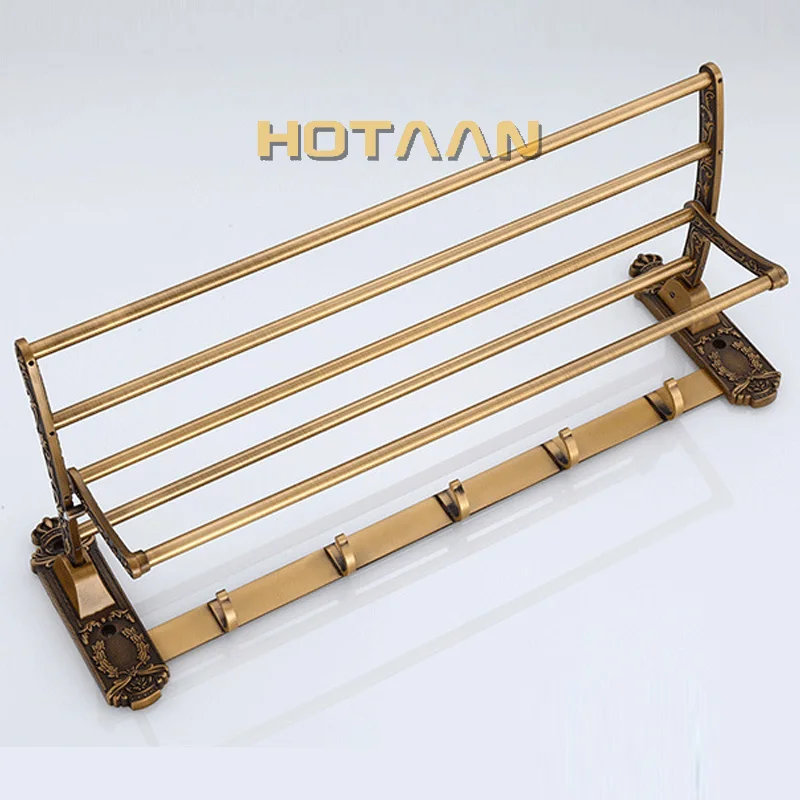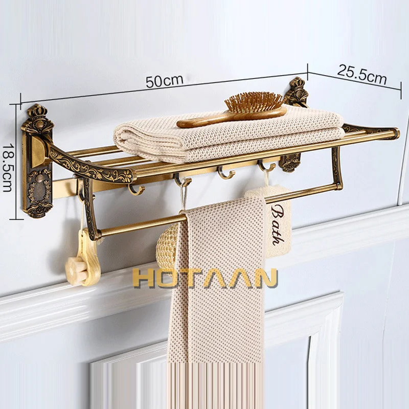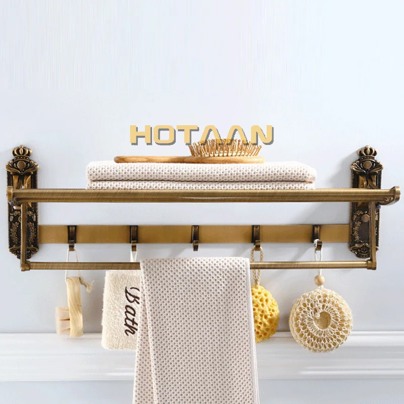 Aluminum Foldable Antique Brass Bath Towel Rack Active Bathroom Towel Holder Double Towel Shelf With Hooks Bathroom Accessories