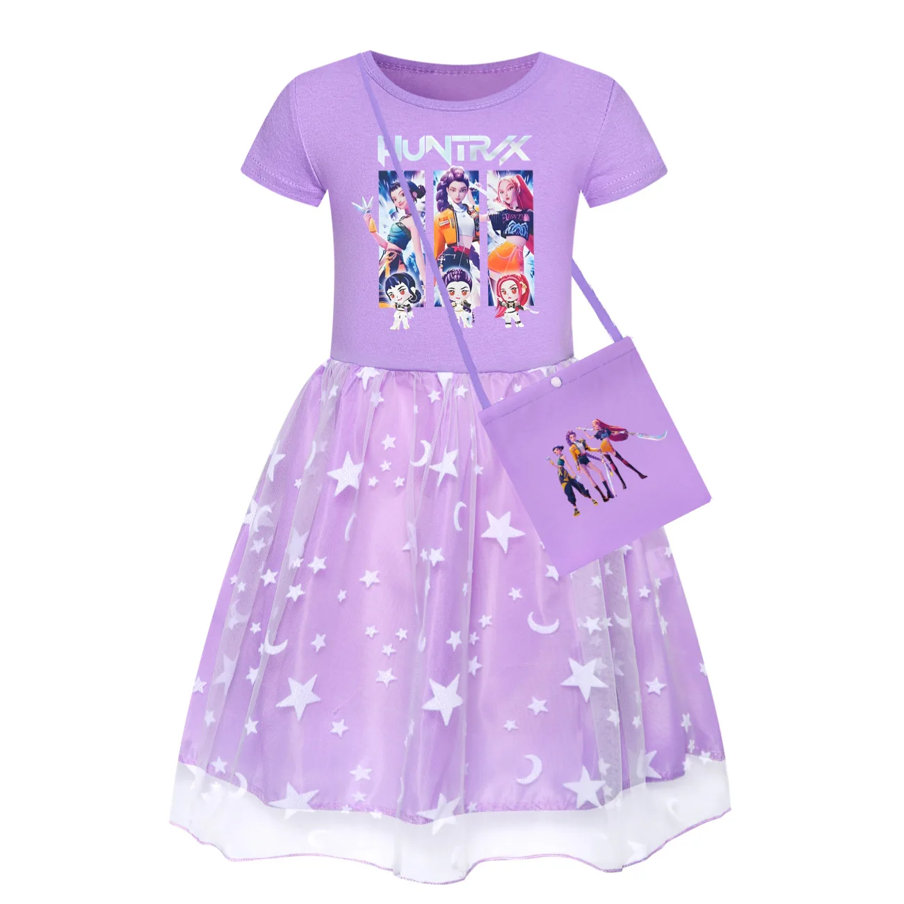 Anime KPop Demon Hunters Kids Summer Dresses Baby Girls Mira Cosplay Costume Children Wedding Party Princess Vestidos