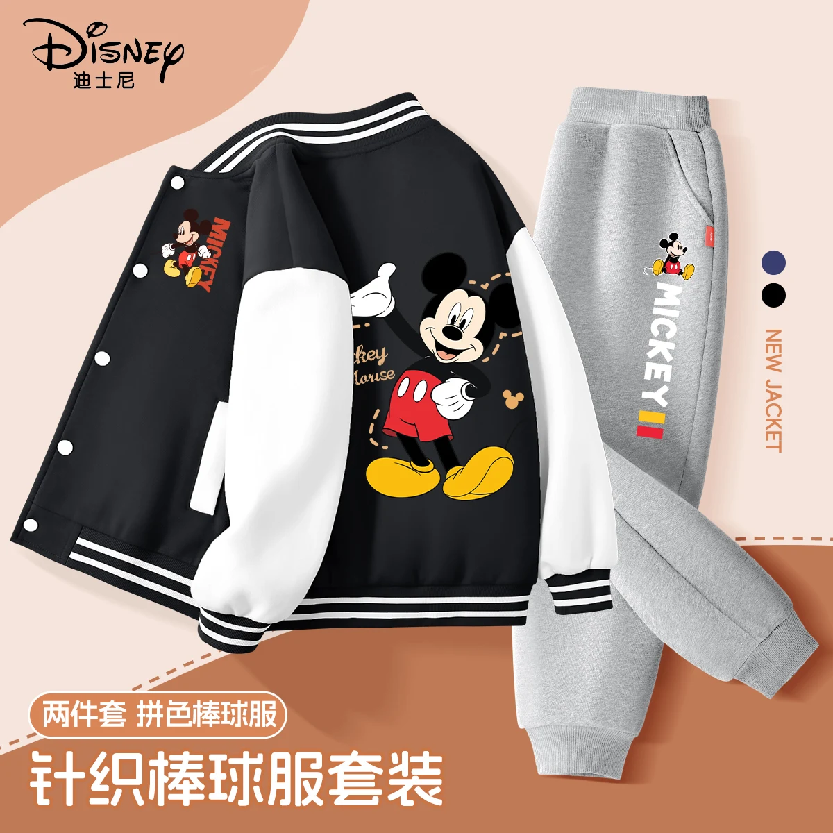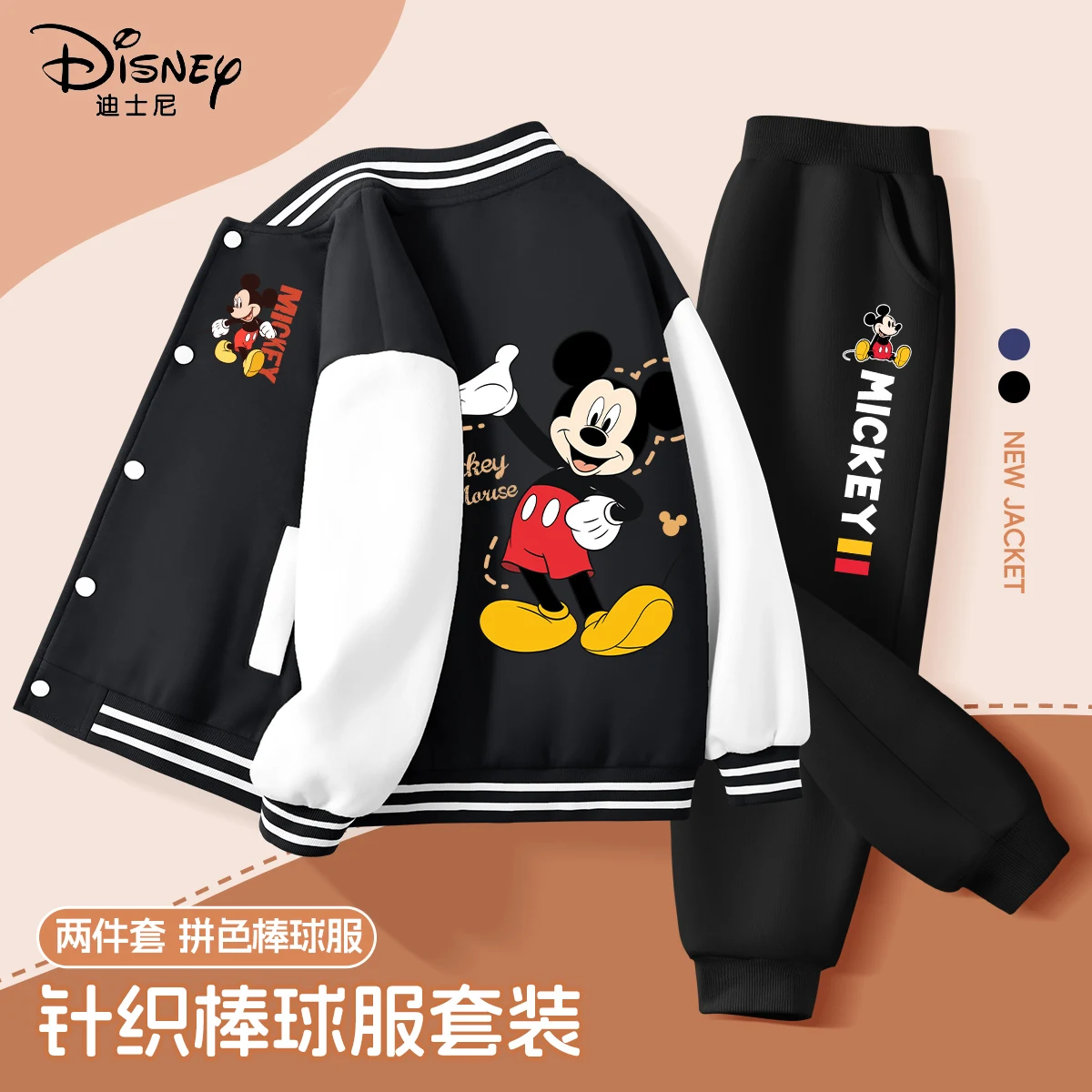 Autumn Baby Boy Disney Mickey Printed Clothes Set Kid Girl Baseball jacket Coat and Pants 2 Pieces Suit Children Tracksuits