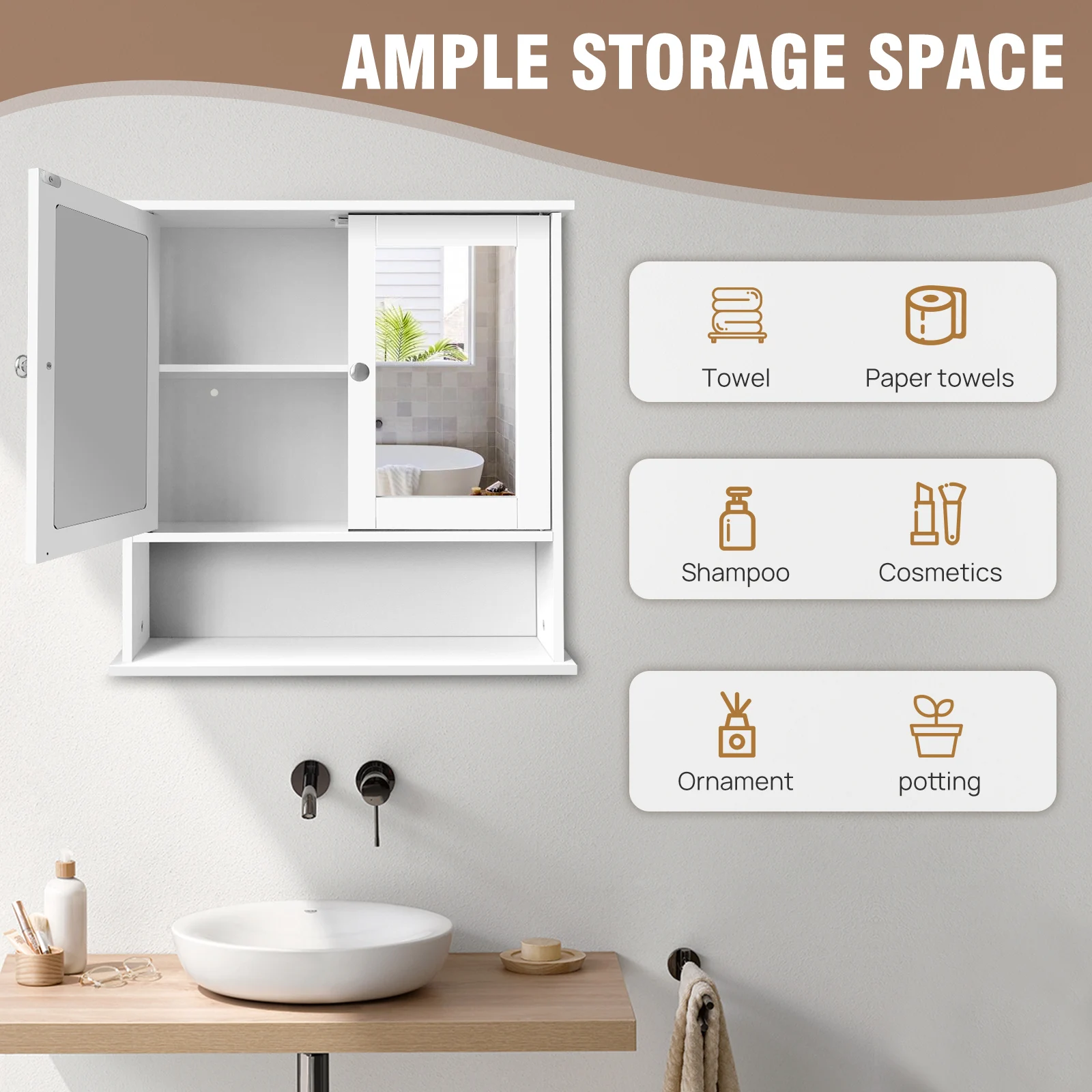 Bathroom Cabinet Wall-Mounted Storage Cabinet Modern Toilet Cupboard Storage Unit with Double Mirror Door Adjustable Shelf White