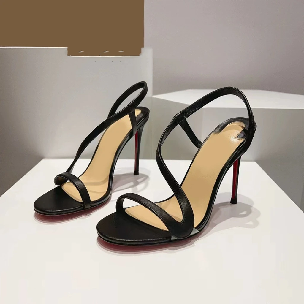 Black one-piece high-heeled shoes for women’s new summer sexy snake shaped open toe comfortable slim heel high-heeled sandals