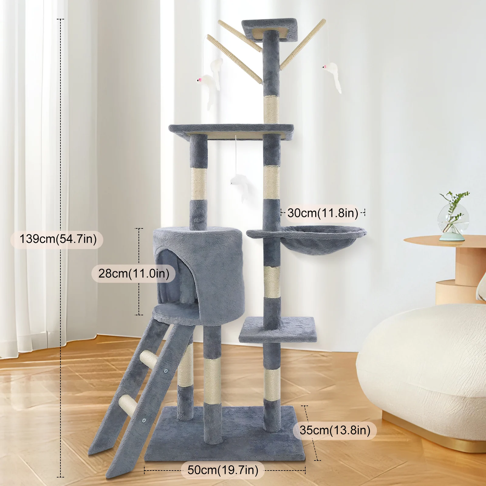 Material: Particleboard, Natural Sisal Rope and Soft Plush