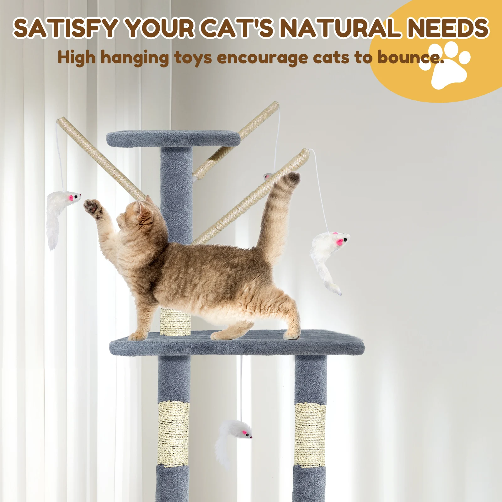 🐱【Fashionable Color】Grey kitten tree fits great with your window and furniture in your house so it does not stick out,you will love the color.