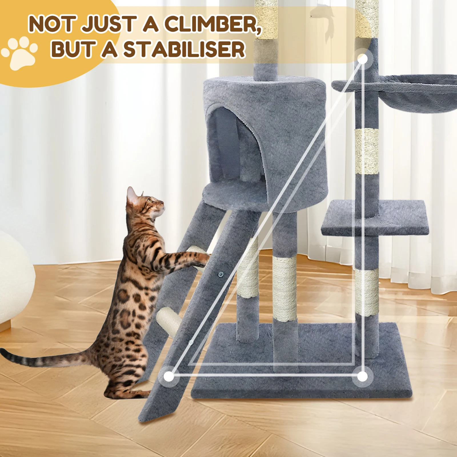 For extra safety: anti-tipper, thicker sisal rods (7cm)