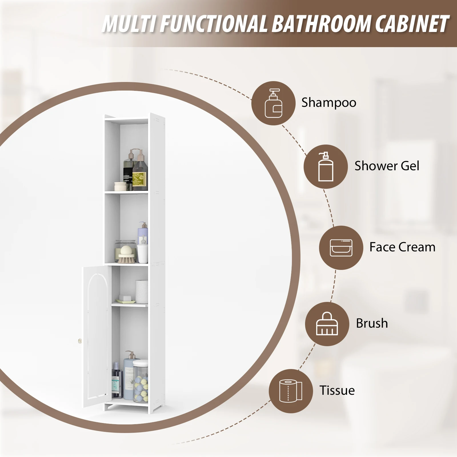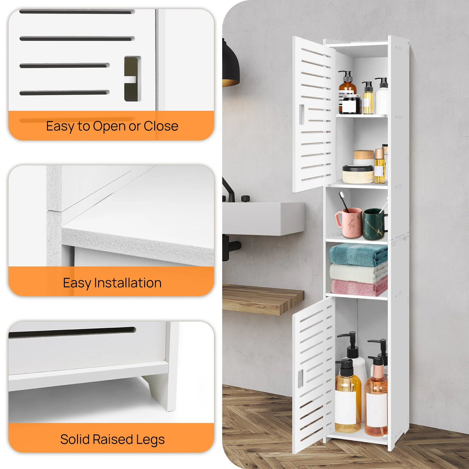 BRIEFNESS Tall Narrow Waterproof Bathroom Cabinet with Door – Freestanding Shelf Unit for Bathroom, Living Room, Bedroom