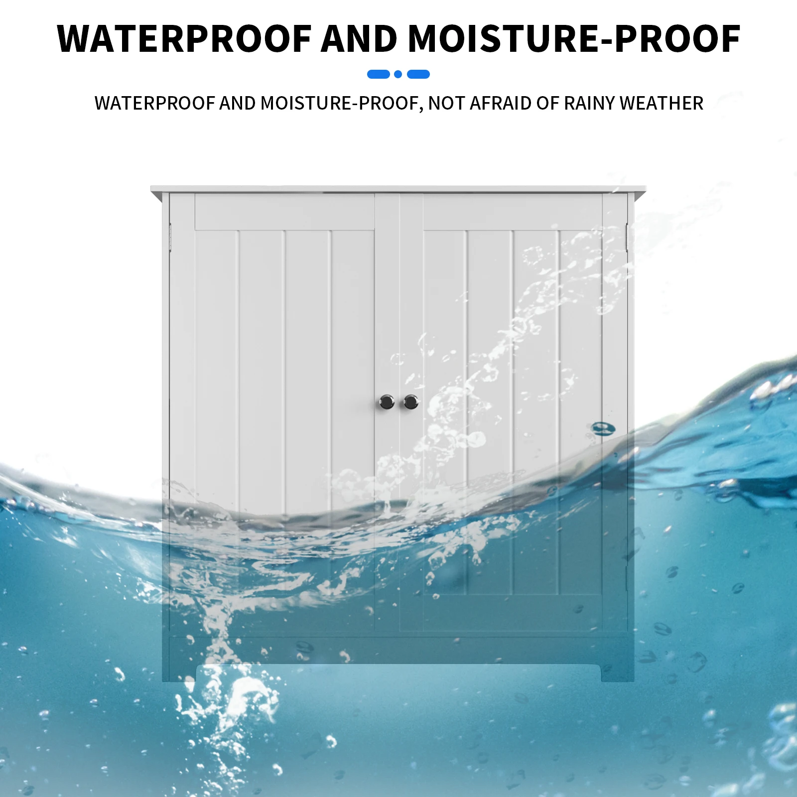 BRIEFNESS Waterproof Bathroom Cabinet 2 Doors Adjustable Shelf, Under Sink Storage Organizer Multi-Purpose Space Saving