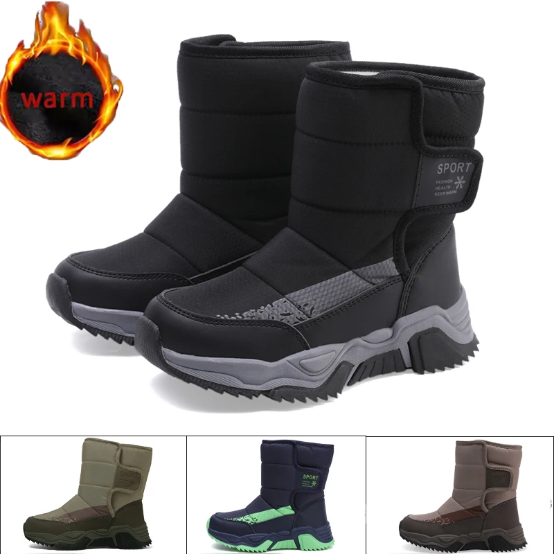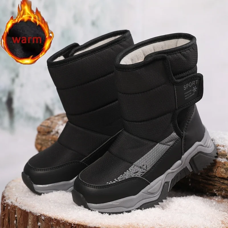 Children’s Snow Boots Winter High-Top Children’s Magic Tape Cotton Shoes Students Outdoor Comfortable non slip thick sole Boots