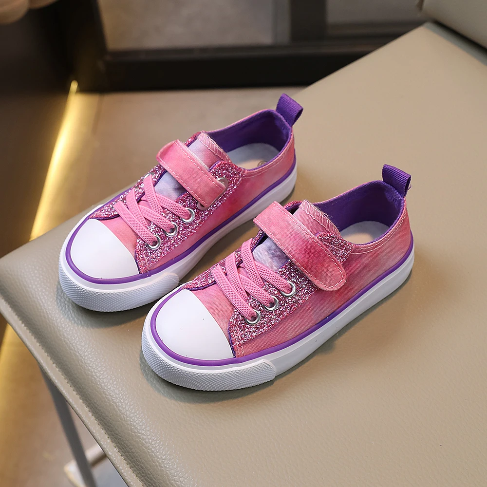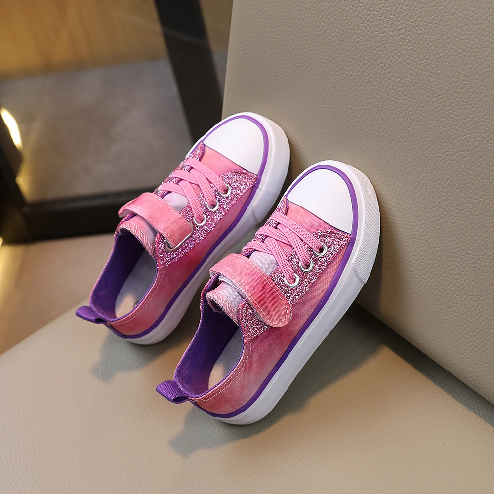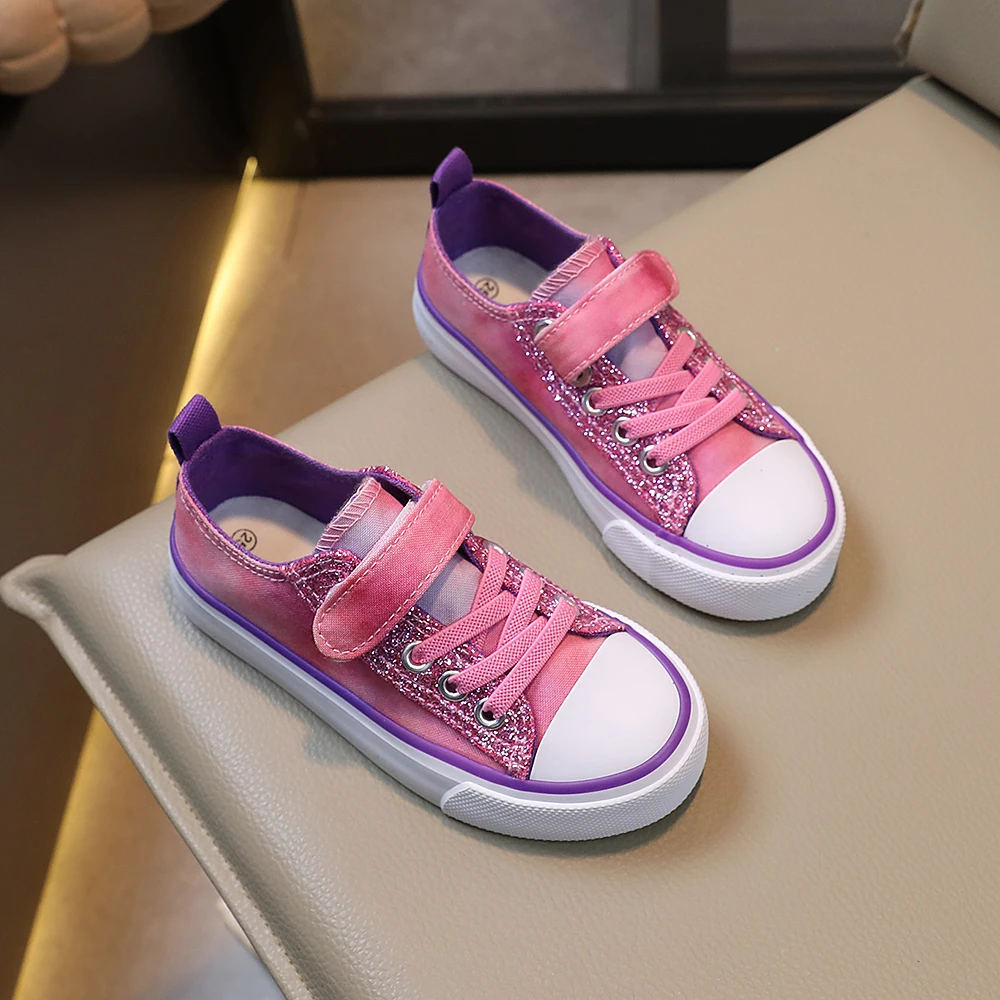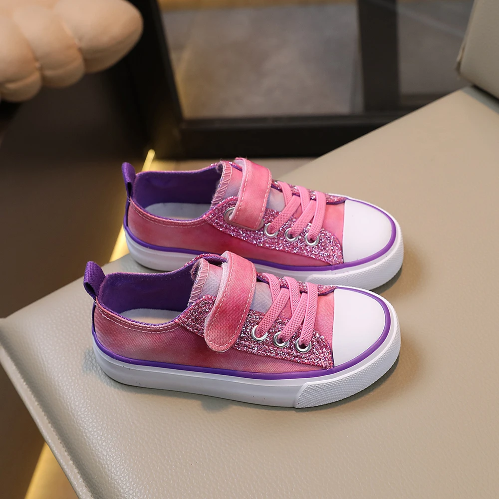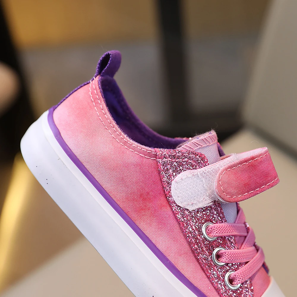 COMFY KIDS Girls Pink Purple Gradient Sequin Sweet Style Low Top Canvas Shoes Breathable Fabric Adjustable Strap All-Season Wear Party Casual Shoes