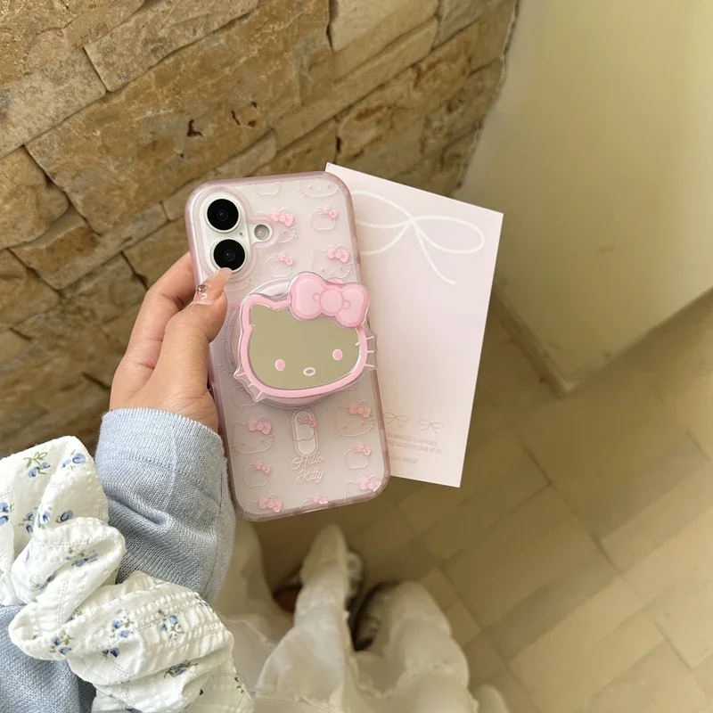 Cute Sanrio Hello Kitty Magnetic Magsafe Wireless Charge Phone Case For iPhone 17 16 15 14 13 Pro Max Mirror Grip Holder Cover