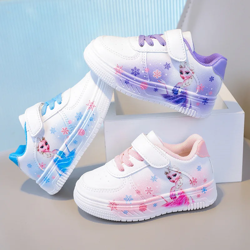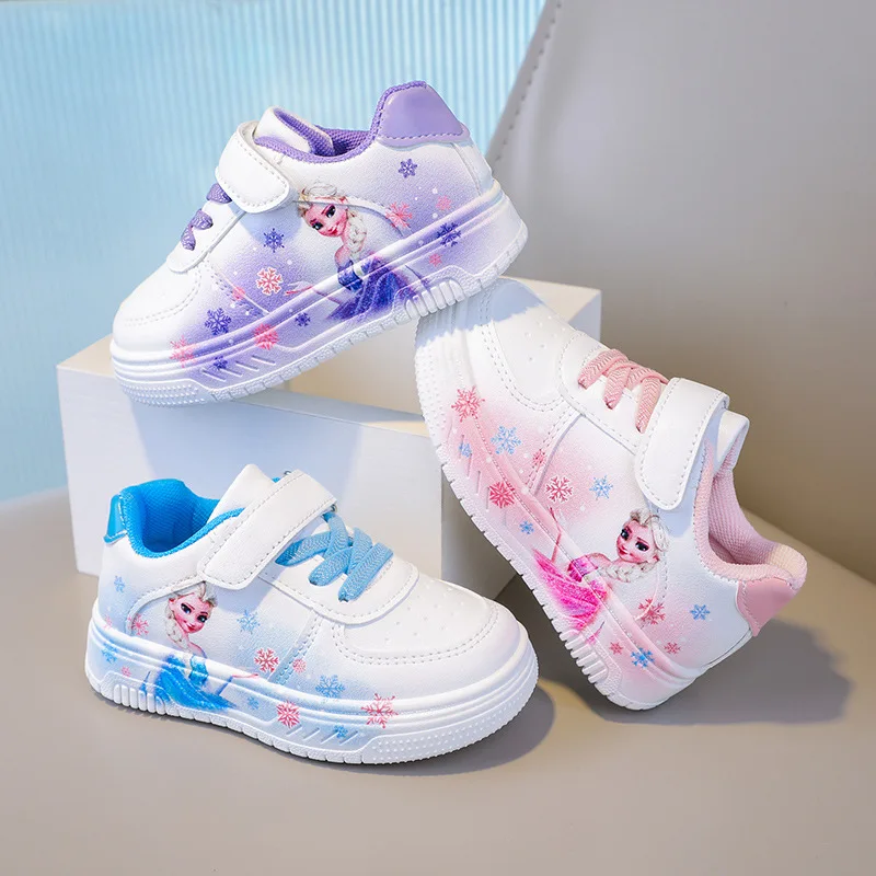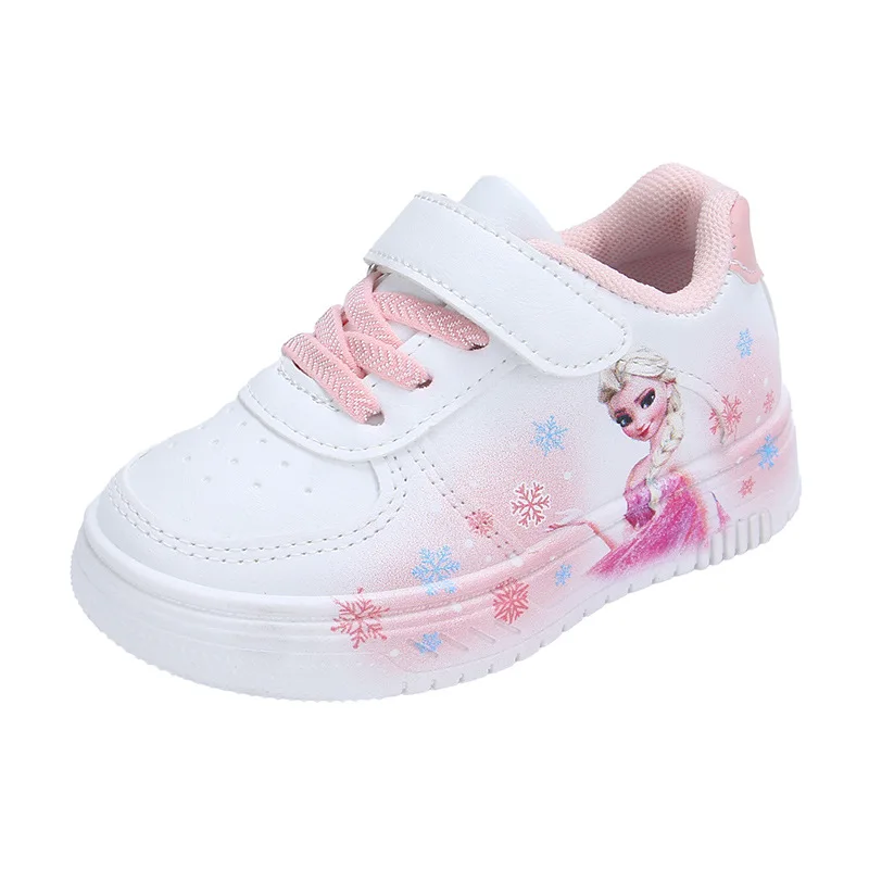 Disney Girls’ White Shoes PU Leather Cartoon Princess Elsa Frozen Shoes Spring Girl Baby Waterproof Sports Shoes Flats Size