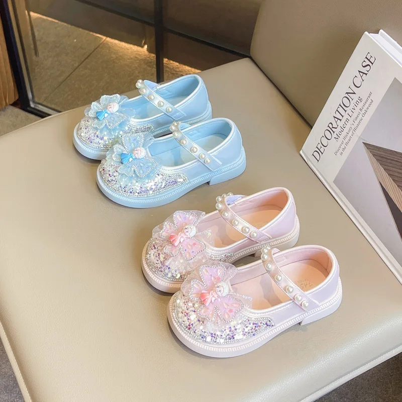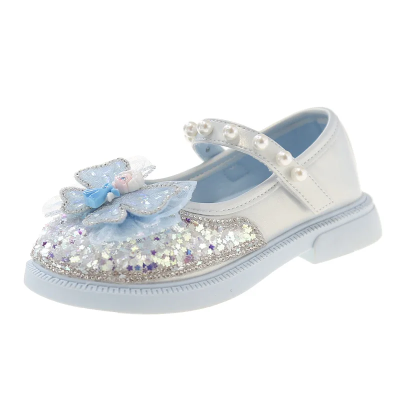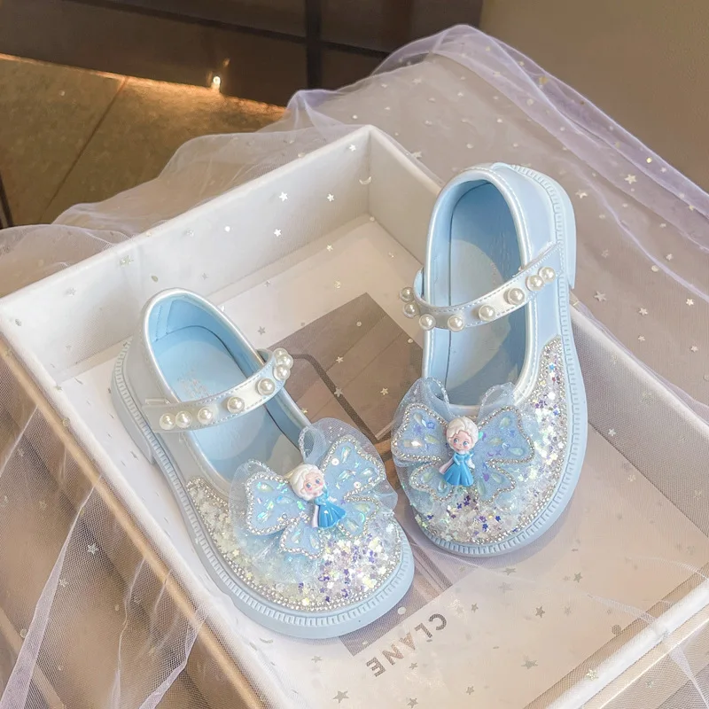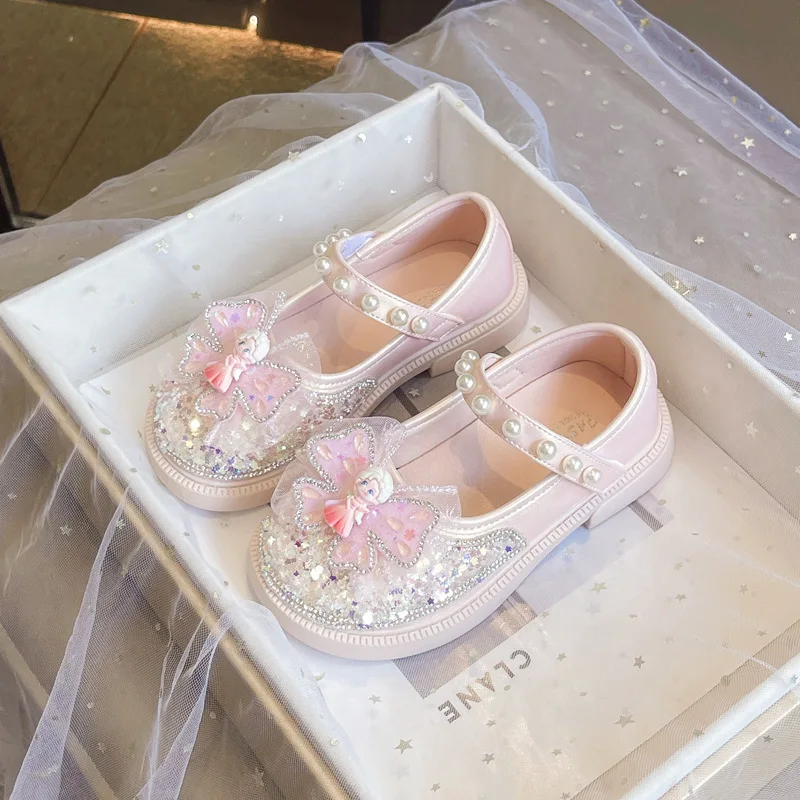 DisneyPrincess Shoe for Girls Single Crystal Sandals Spring New Style Children’s Shoes Rhinestone Little Girl Leather Baby Shoes