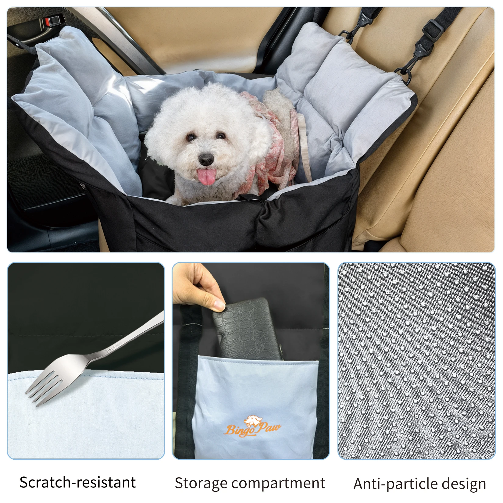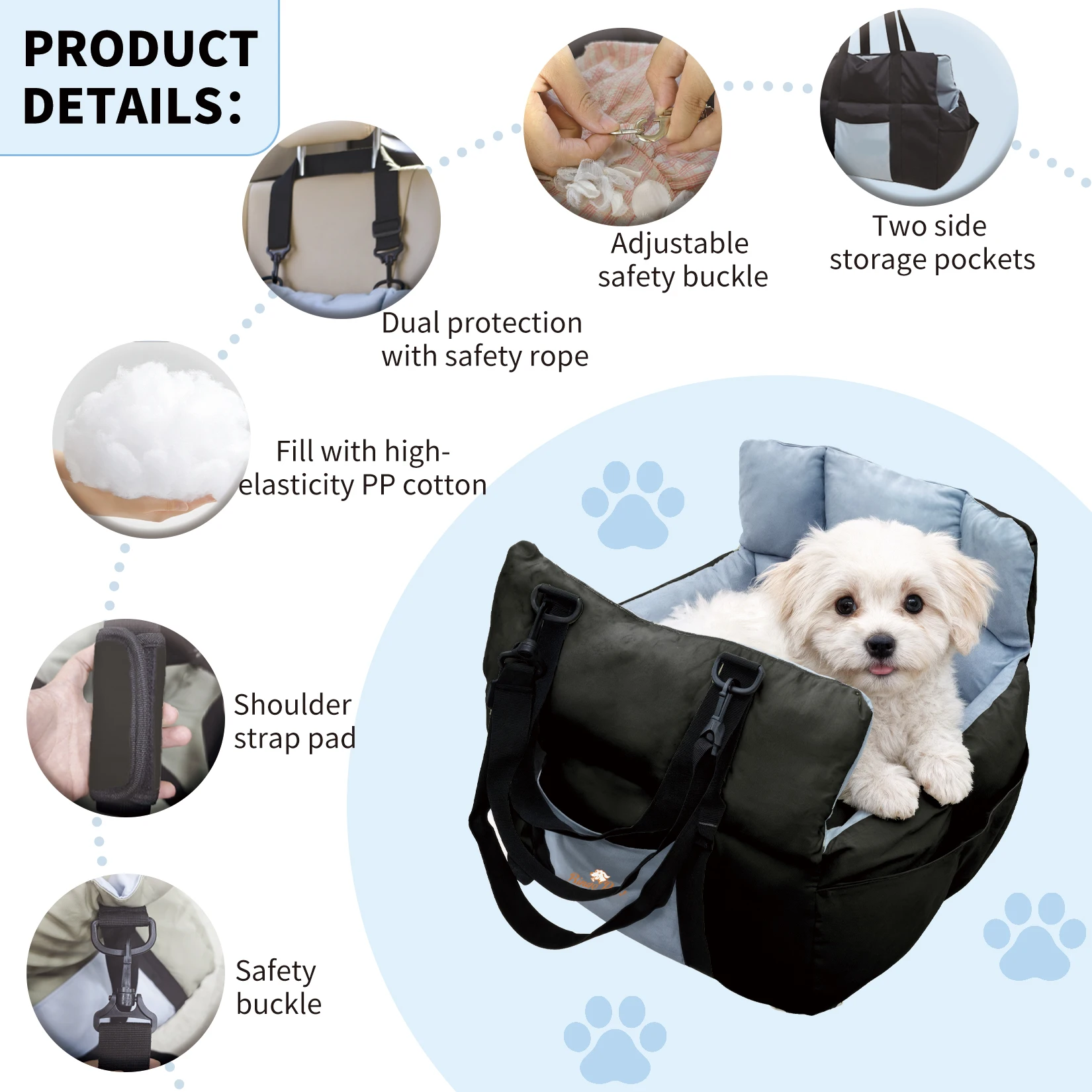 On long drives, comfort supports calm behavior and safer travel; this pet car seat with cushion uses high-resilience PP cotton to soften bumps, while the elevated design works as a dog booster seat for car rides so small dogs can see out and relax, helping you drive with confidence
