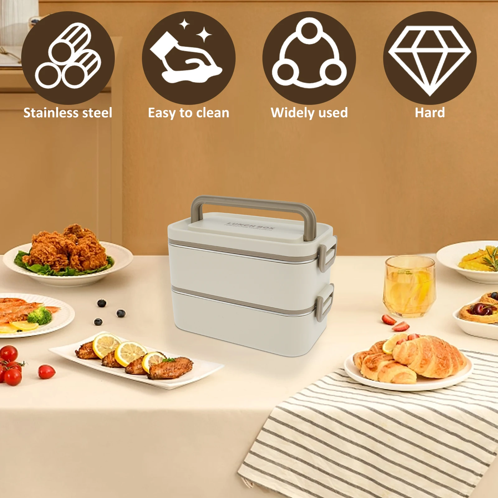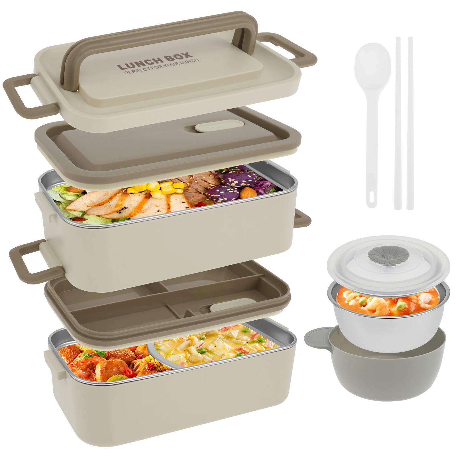 Safe Material: This double layer food box is made of stainless steel inner (including soup bowl) and premium PP material, which is safe, rustproof, and enduring for long term use