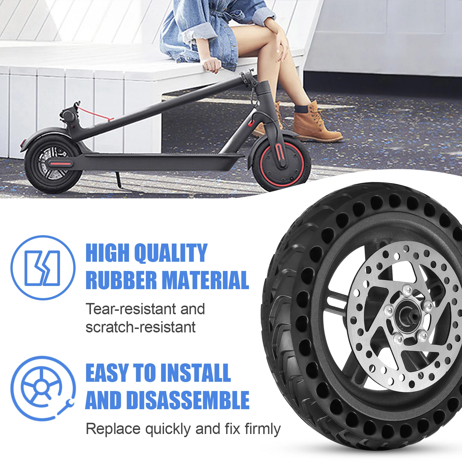 Electric Scooter Rear Tire with Wheel Hub Disc Brake Set 8.5 inches Solid Electric Scooter Wheel Replacement for Xiaomi M365
