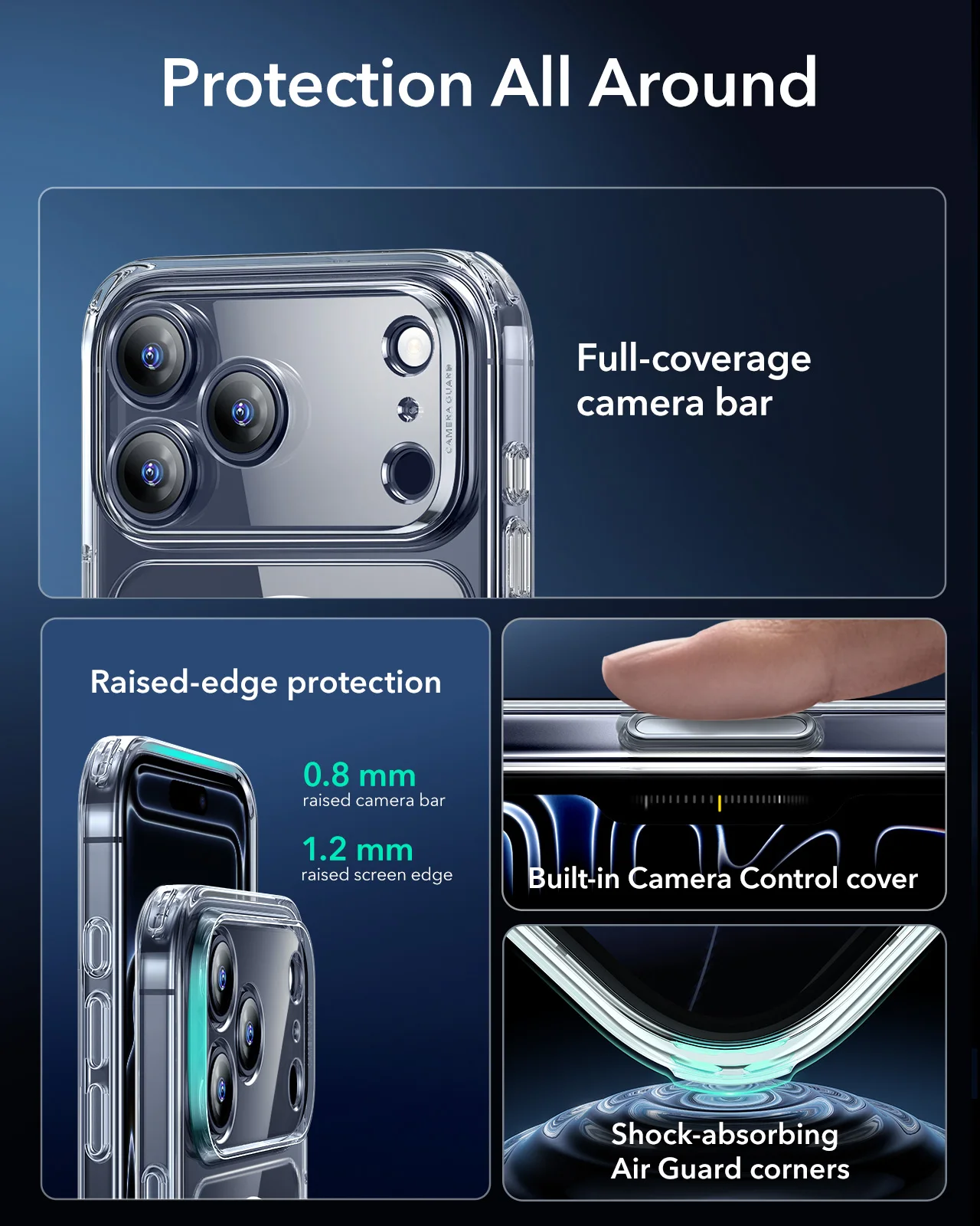 Military-Grade Drop Protection: rigorously tested to ensure total protection on all sides, with specially designed Air Guard corners that absorb shock