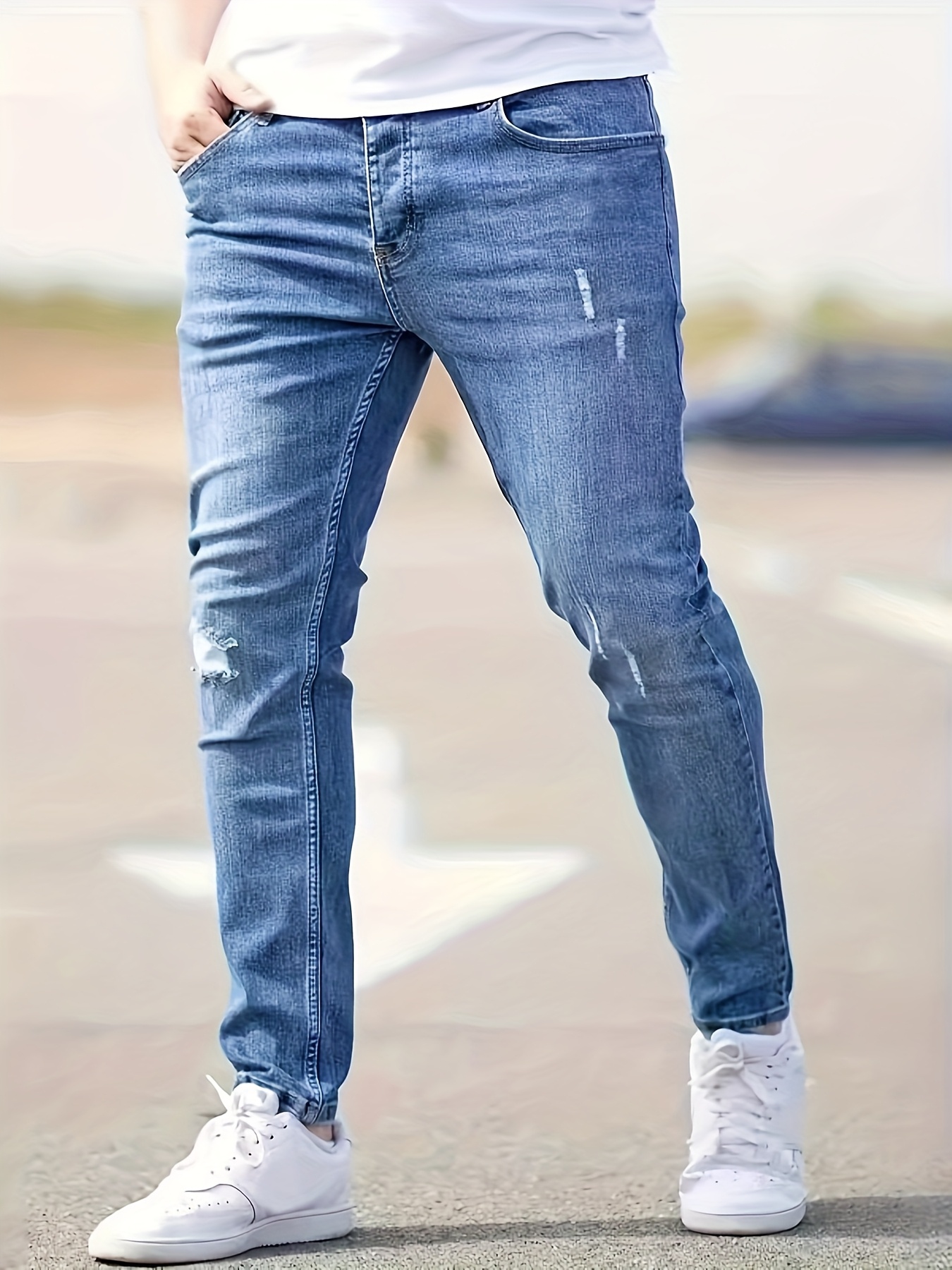 Fashion – Forward Ripped Details:The strategically placed ripped accents give these jeans a fashionable, edgy vibe. The distressed design is carefully crafted to add a unique, urban – inspired look, making you stand out in a crowd. Whether you're going for a casual street – style look or a more laid – back weekend outfit, these rips elevate your style.