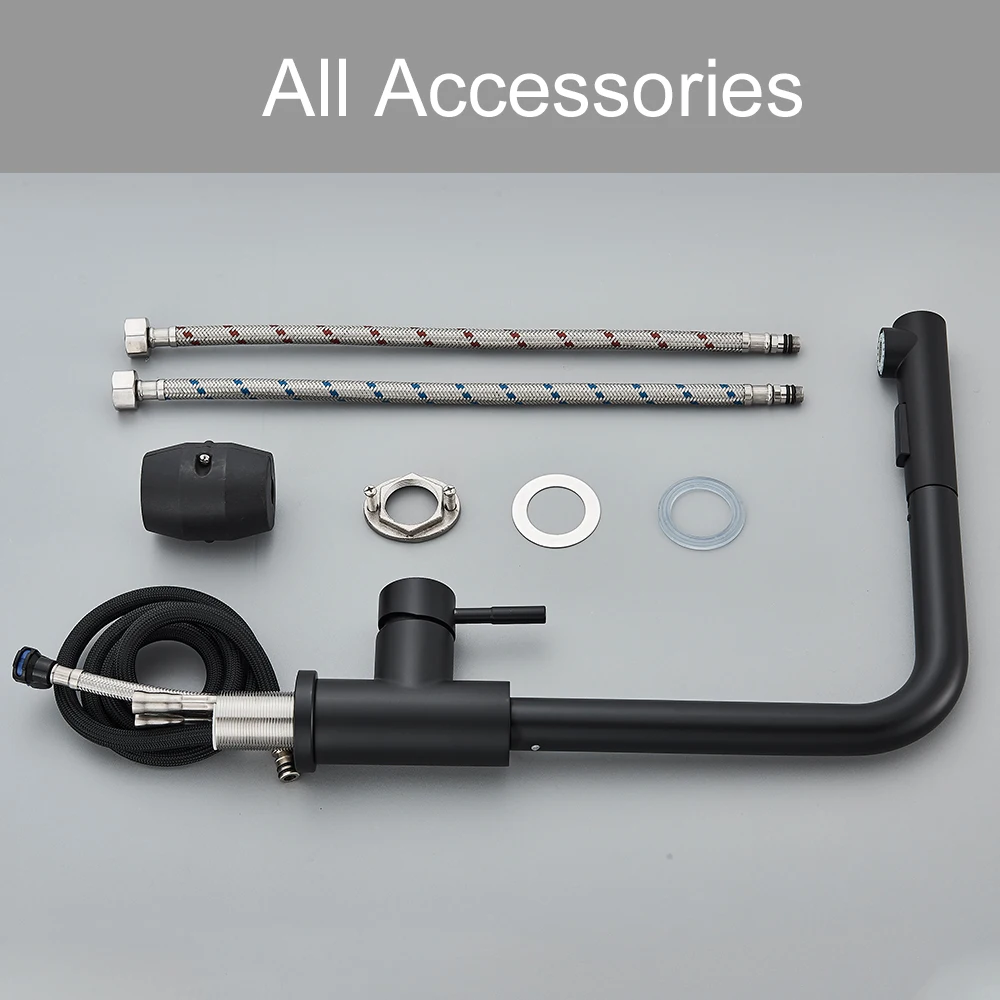 Black Pull Out Kitchen Sink Faucet Deck Mounted Stream Sprayer Kitchen Mixer Tap Single Handle Bathroom Kitchen Hot Cold Tap