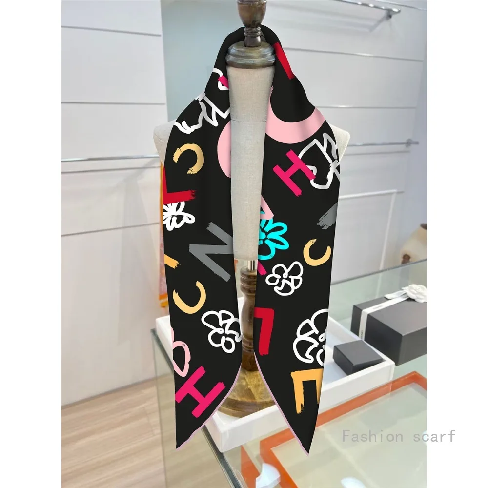 French Style New Black and White Letter Color Matching Women’s Shawl Large Square Scarf Twill Silk Headscarf Scarf Wholesale