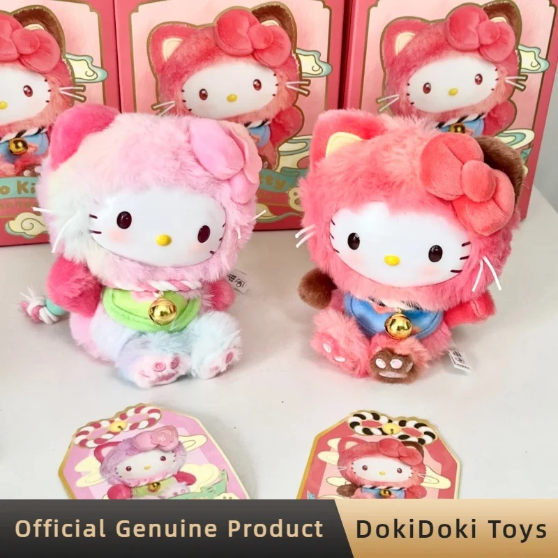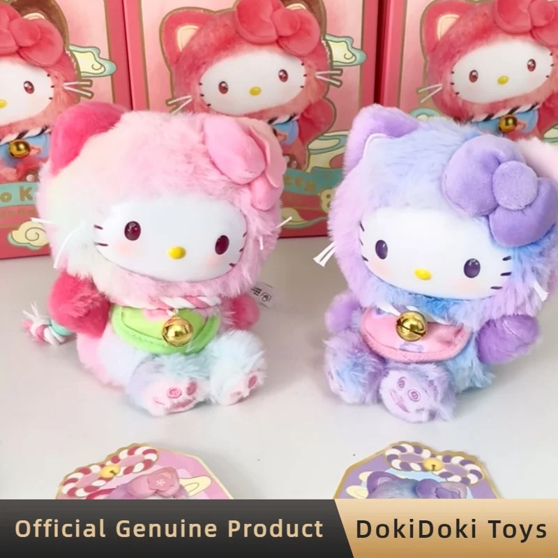 Genuine Sanrio Hellokitty Lucky Cat Blessing Blind Box Cute Vinyl Plush Pendant Collectible Trendy Toy Keychain Gift For Girls
