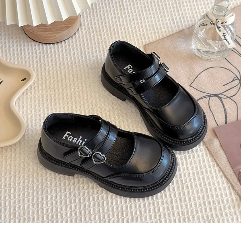 Girls Leather Princess Kids Shoes Black Party Wedding Shoes Back To School Mary Janes Double Heart Buckle Classic Soft Fashion