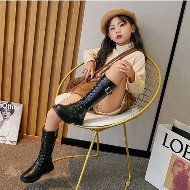 Girls Long Boots Black Knee-high 2024 Autumn Winter Children High Tide Boots Zipper Fashion Brand New Kids Motorcycle Boots