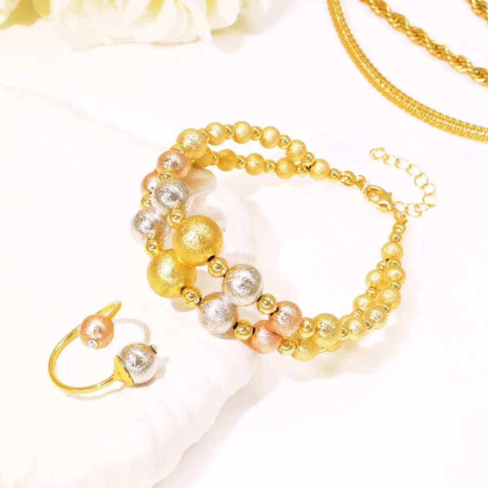 GZJPEI 2025 New Multi Layer Women Jewelry Set Matte Frosting Texture Round Beads Necklace Set For Bridal Wedding Jewellwey Gift